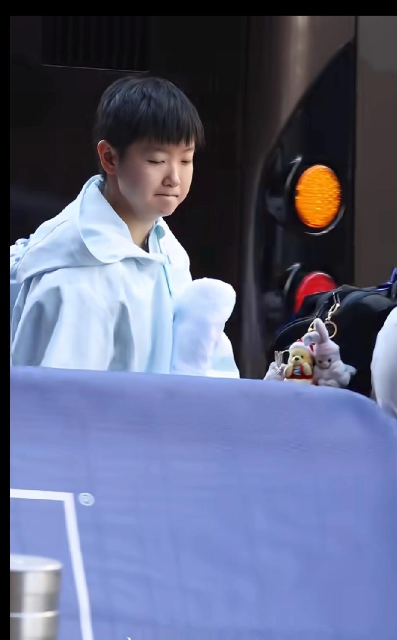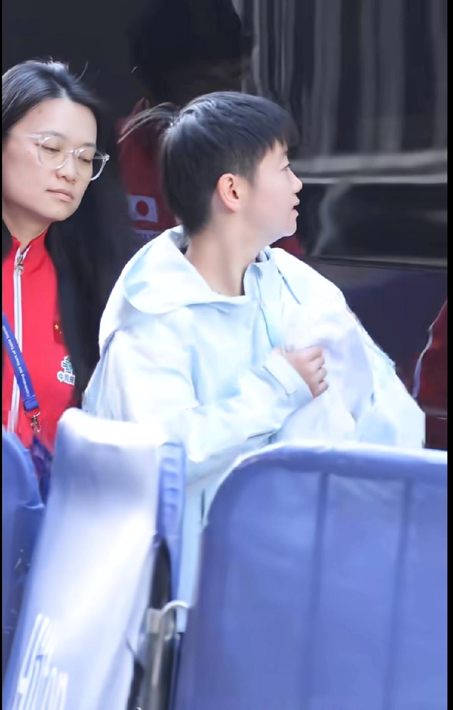还是那个熟悉的模样:怀里紧紧抱着不离手的小白毛巾,单肩包挎在身上,一路乖乖跟着走。训练了一天,头发都炸毛了,后脑勺几撮小碎毛翘得老高,像个不听话的小毛球。走的时候抿着小嘴,安安静静的,软乎乎的样子,真的又乖又萌。