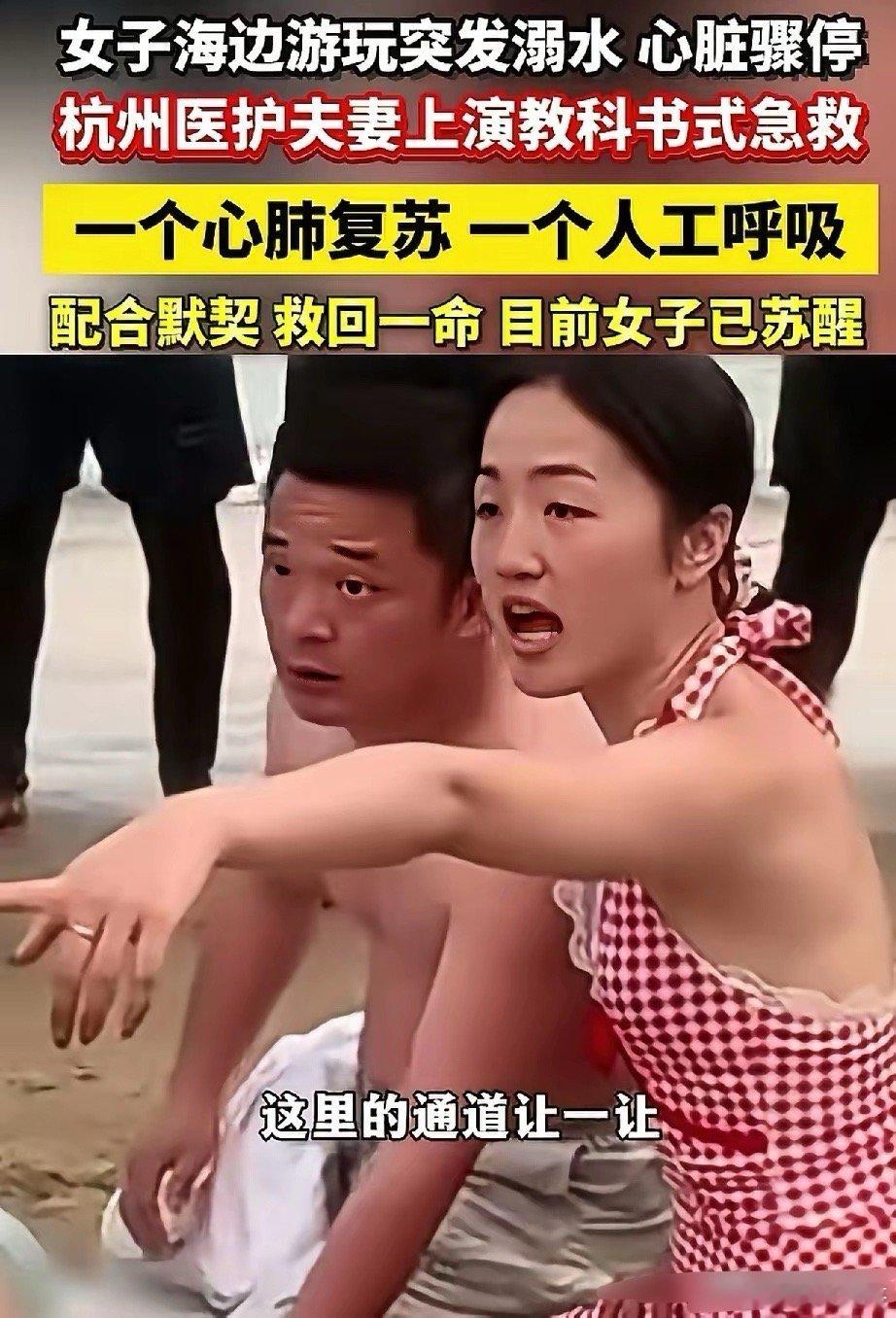 记住这两个人的长相,把溺水女子硬是从鬼门关拉了回来,一人心跳复苏,一人人工呼吸,配合默契,上演了教科书般的急救,没想到两人还是夫妻,真应了那句古话,夫妻同心其利断金呀!4月26日,海南万宁海边,一女子意外落水,被救上岸后已经嘴唇发紫,心脏骤停,没有了呼吸,可以说是命悬一线,情况十分危急。恰巧这时一对90后夫妻正好在此旅游经过,看见有一群人围在一起,了解情况后,两人立刻展开救援,该男子立即跪在地上给溺水女子做心肺复苏,而旁边的女子则为她做人工呼吸。期间,尽管溺水女子口中还不断吐出白沫和异物,但是救人女子并没有任何嫌弃,直接用衣服将嘴巴擦干净,继续展开救援。就这样两人配合默契,不断地重复着急救动作,大约在4分钟后,奇迹发生溺水女子从心脏骤停变得渐渐有了呼吸,有了反应,周围围观人群被这一幕感动,纷纷拍手称赞两人。直到120救护车赶到顺利把女子接走,夫妻爱人悬着的心才放松下来,休息片刻后,两人便默默从人群中离开了。视频发布后迅速引发关注,而这两位好心人也被找到,他们是浙大一院余杭区的医护人员,也是一对夫妻。真是大爱呀,必须给这两人点赞,如果当时没有他们上演教科书般的专业急救,那后果不堪设想,网友们更是提议院方,对这对夫妻进行表彰嘉奖,宣传正能量。