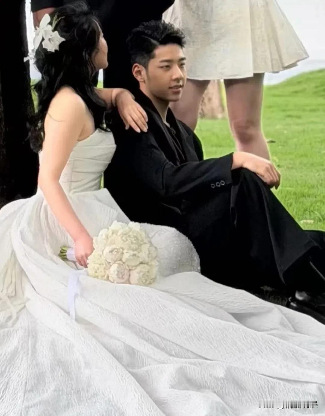 爸爸妈妈穿得像一对新人那样,石头在后面一手拖着婚纱,一手拿着手机录像。曾经那个在《爸爸去哪儿》里萌萌的小男孩,现在长得高大结实帅气,很有霸总范了!