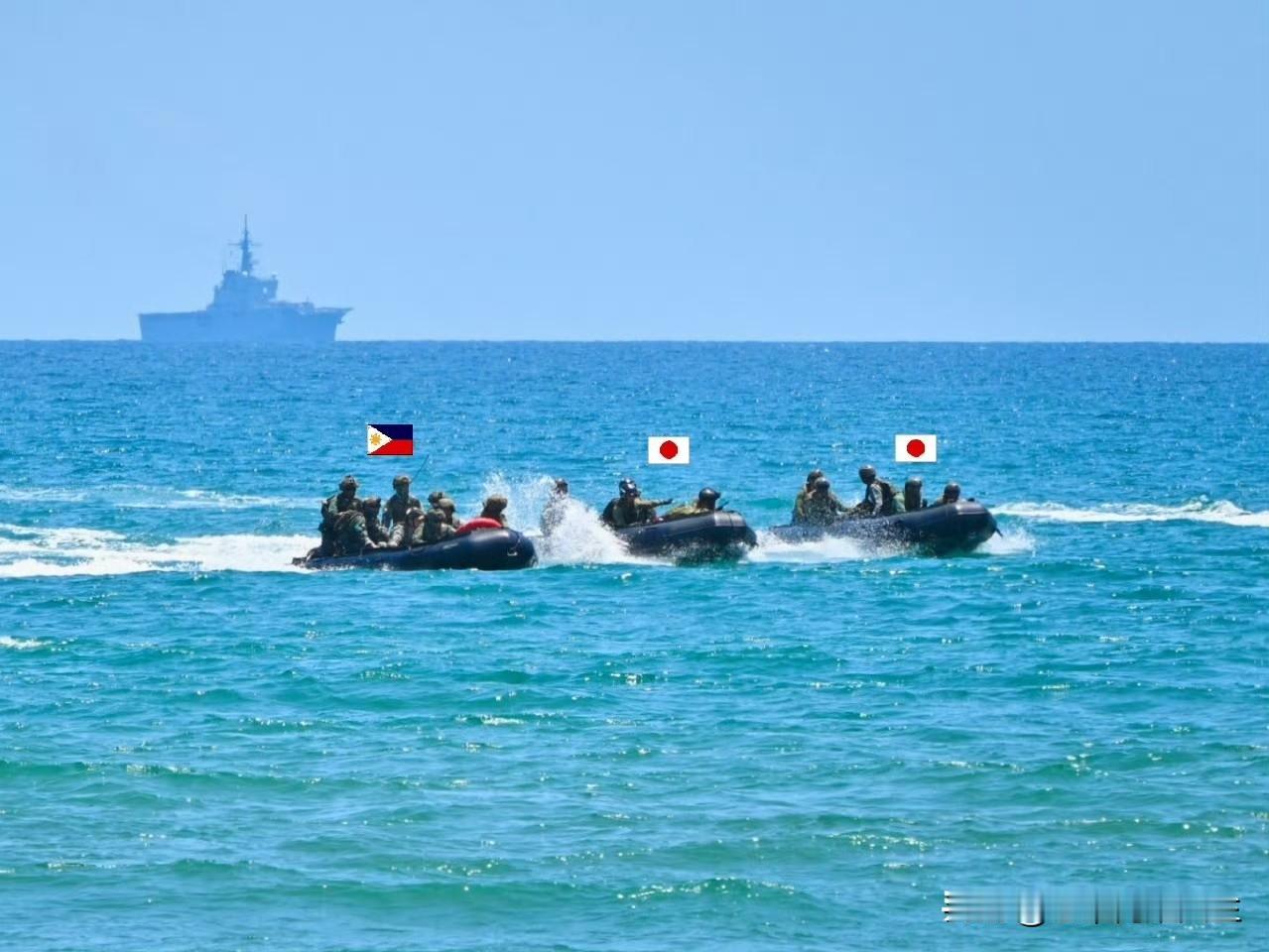 从现场演习画面看,这从小日子海自“下北号”两攻舰上驶出的几艘登陆快艇,一共也就拉了十几个日菲大头兵,这规模实在过于寒酸了。