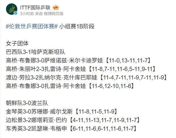 主要信源:(国际乒联微博——小组赛1B阶段)