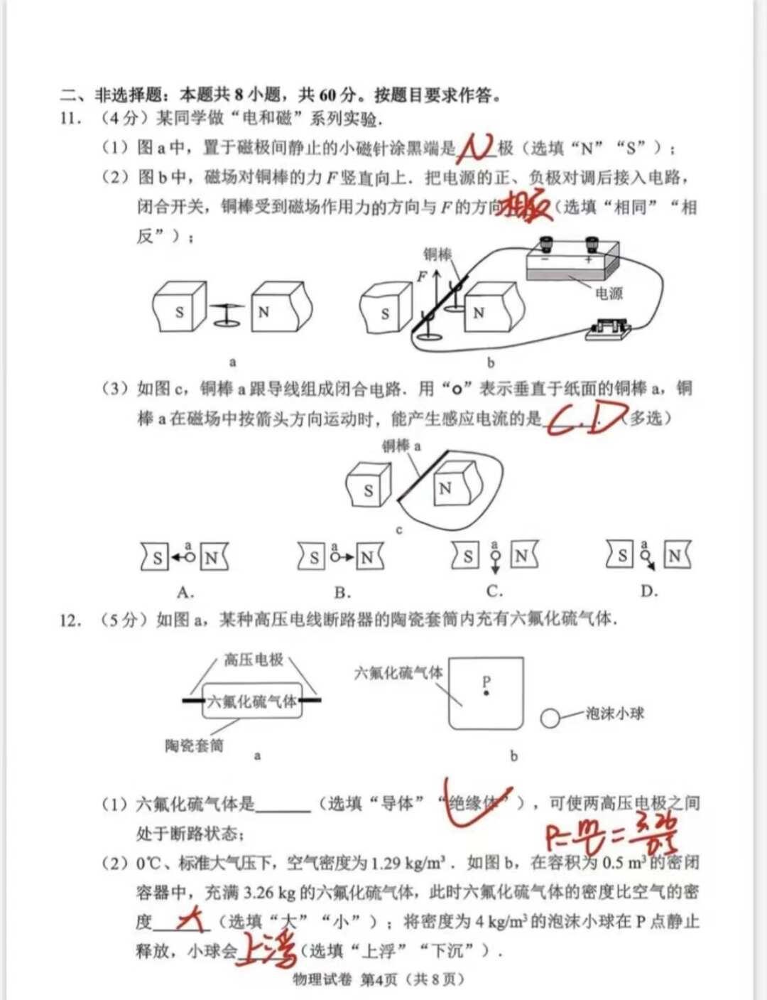 一模物理参考答案