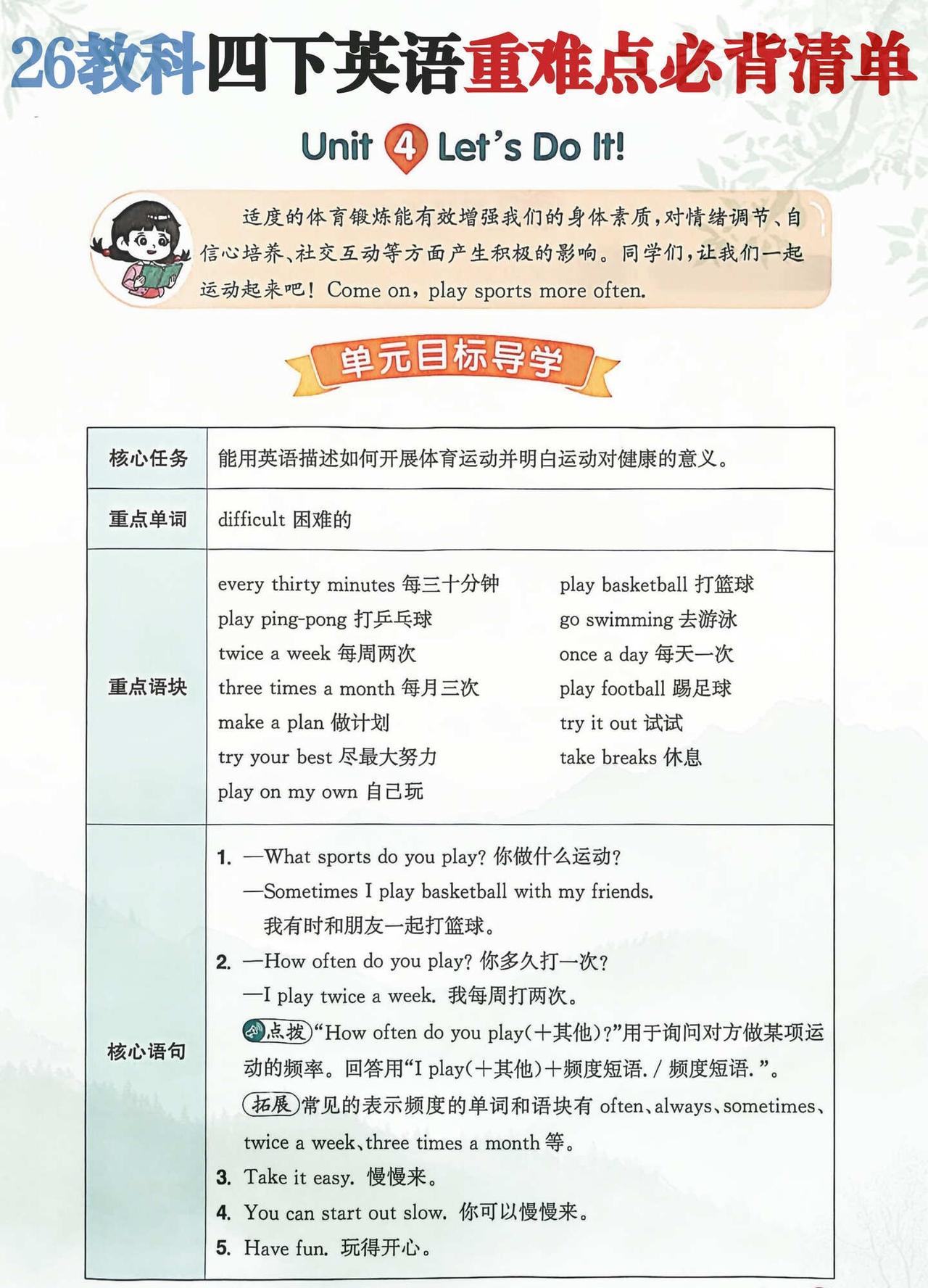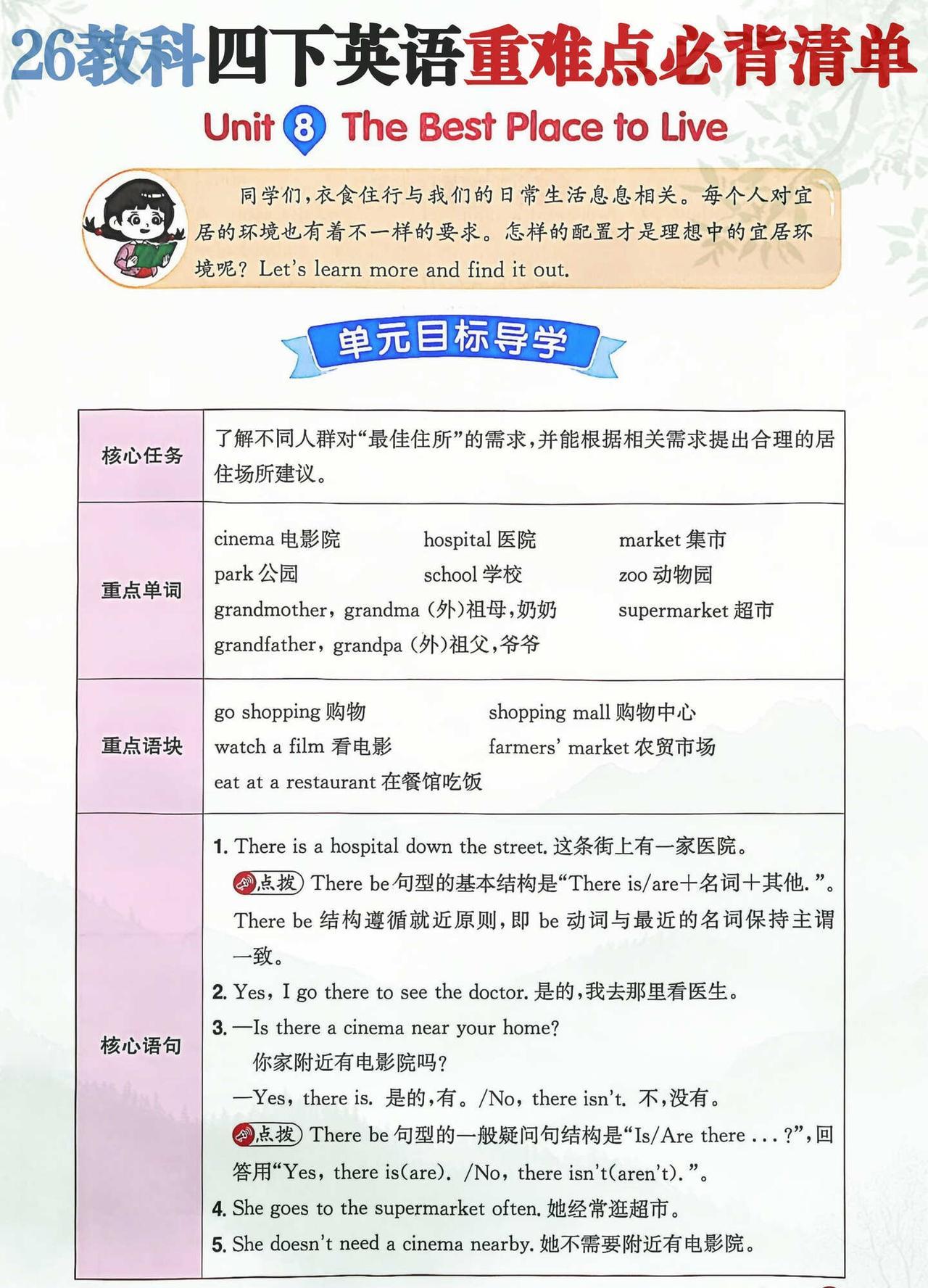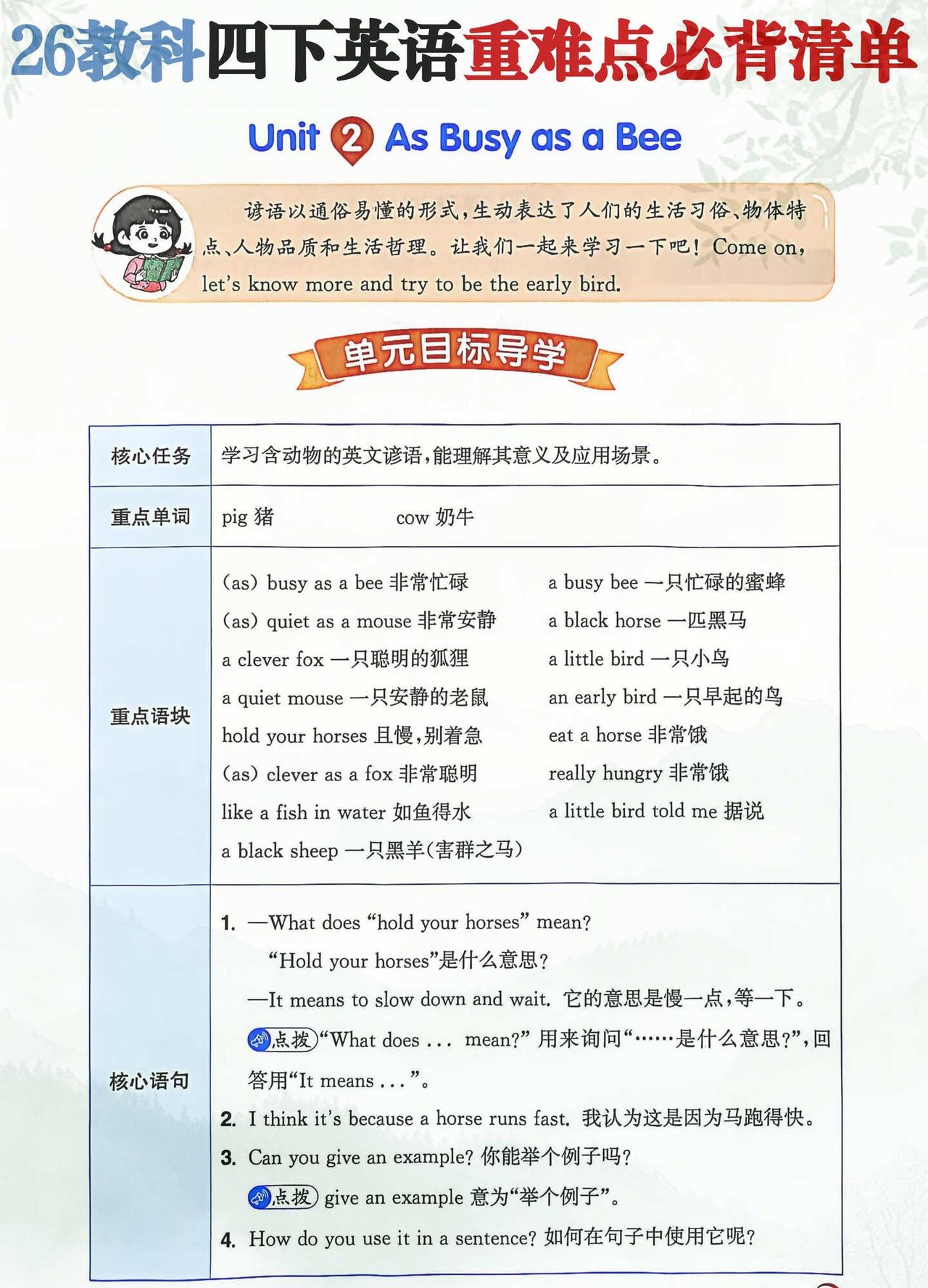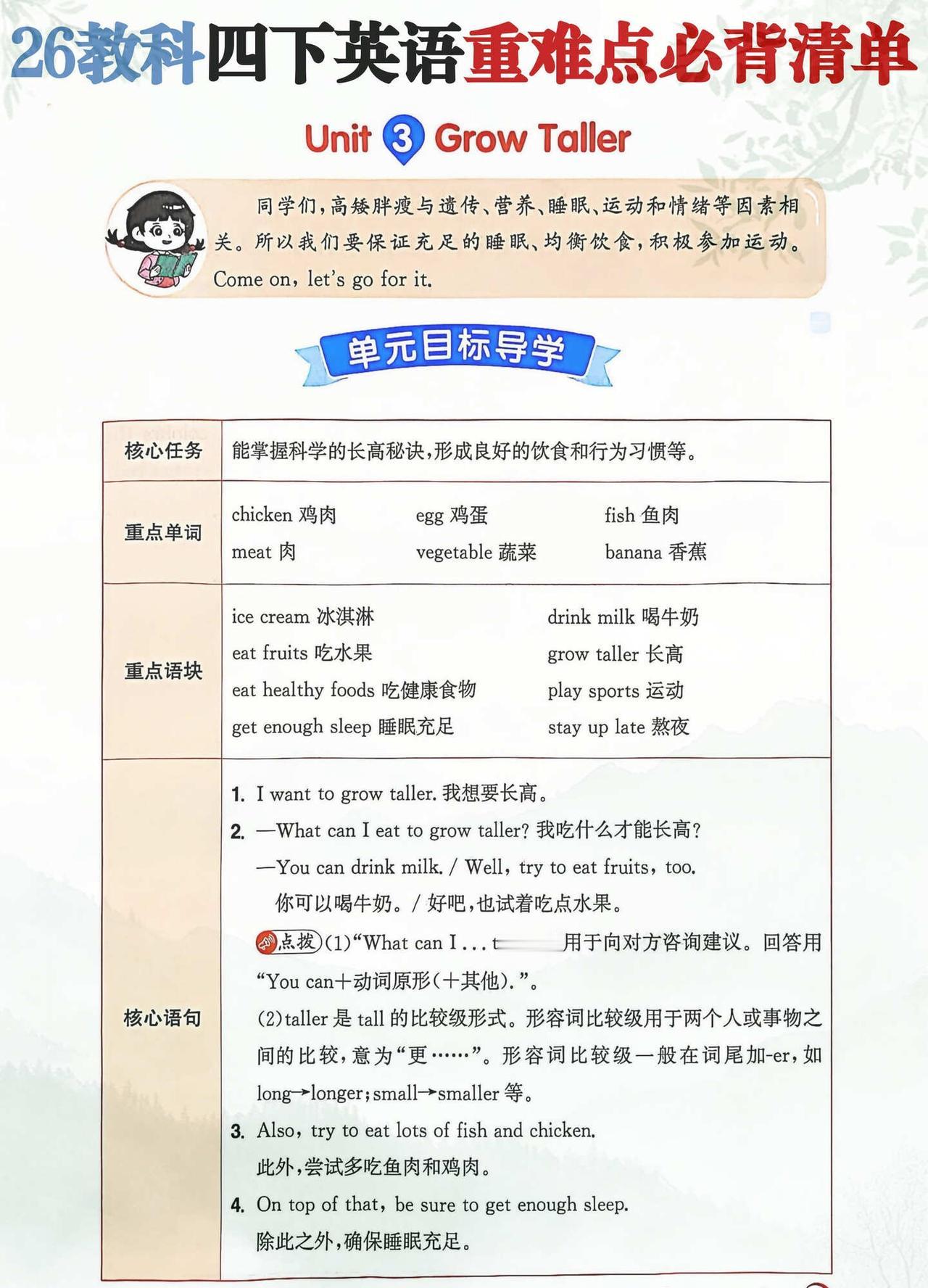 教科四下,考试成绩第一的秘籍:提前背‼️ 教科版 易错语法 四年级下册英语 知识
