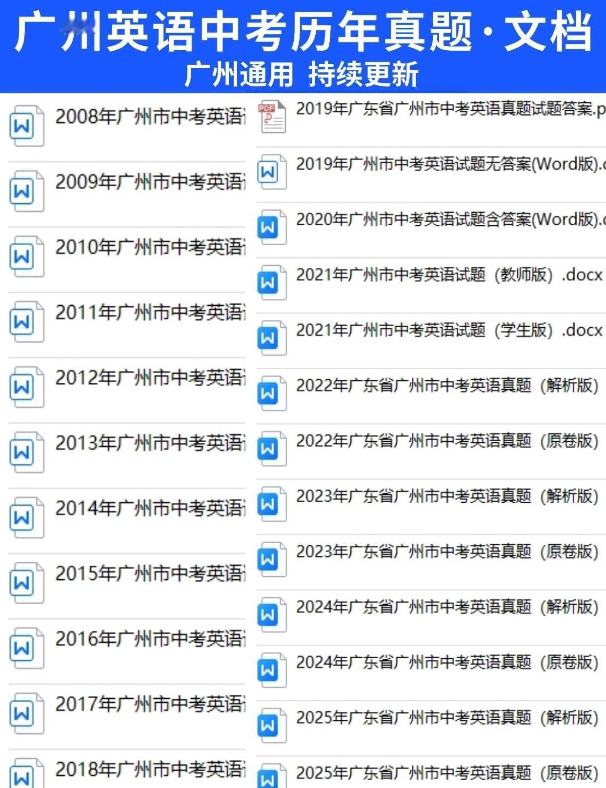 冲分🎯广州中考英语历年真题附详解 广州中考 中考英语 历年真题 真题解析 英语