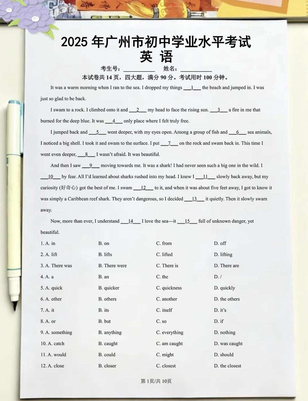 广州中考 中考英语 历年真题 真题解析 英语真题 试卷 复习 2026届中考备考 初中英语