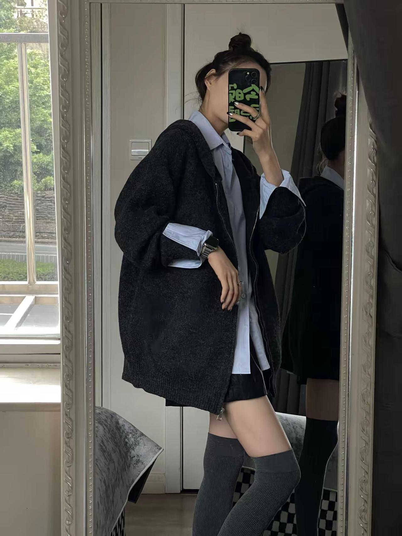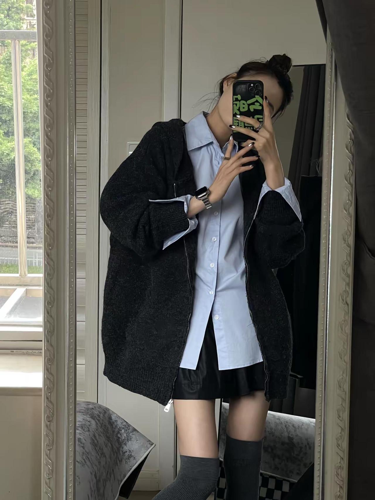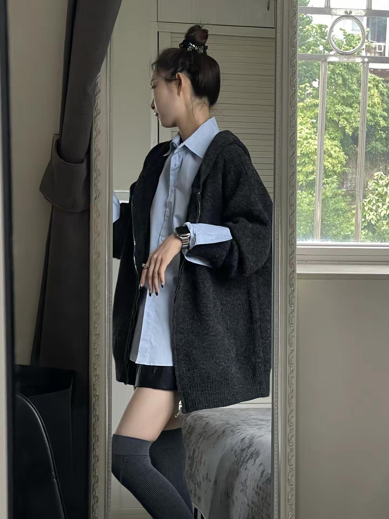 蓝衬衫➕灰色毛衣开衫太有韩女味了!这才是我春天该有的样子 春日去班味必买 随意穿