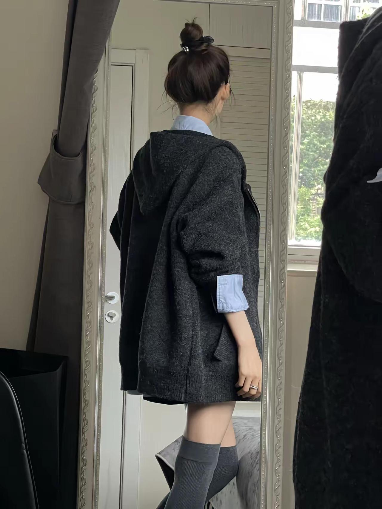 蓝衬衫➕灰色毛衣开衫太有韩女味了!这才是我春天该有的样子 春日去班味必买 随意穿搭 交出你的春日ootd