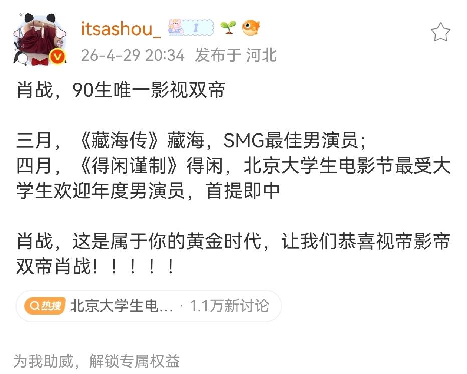 属于肖战的黄金时代到来了[赞][赞][赞]