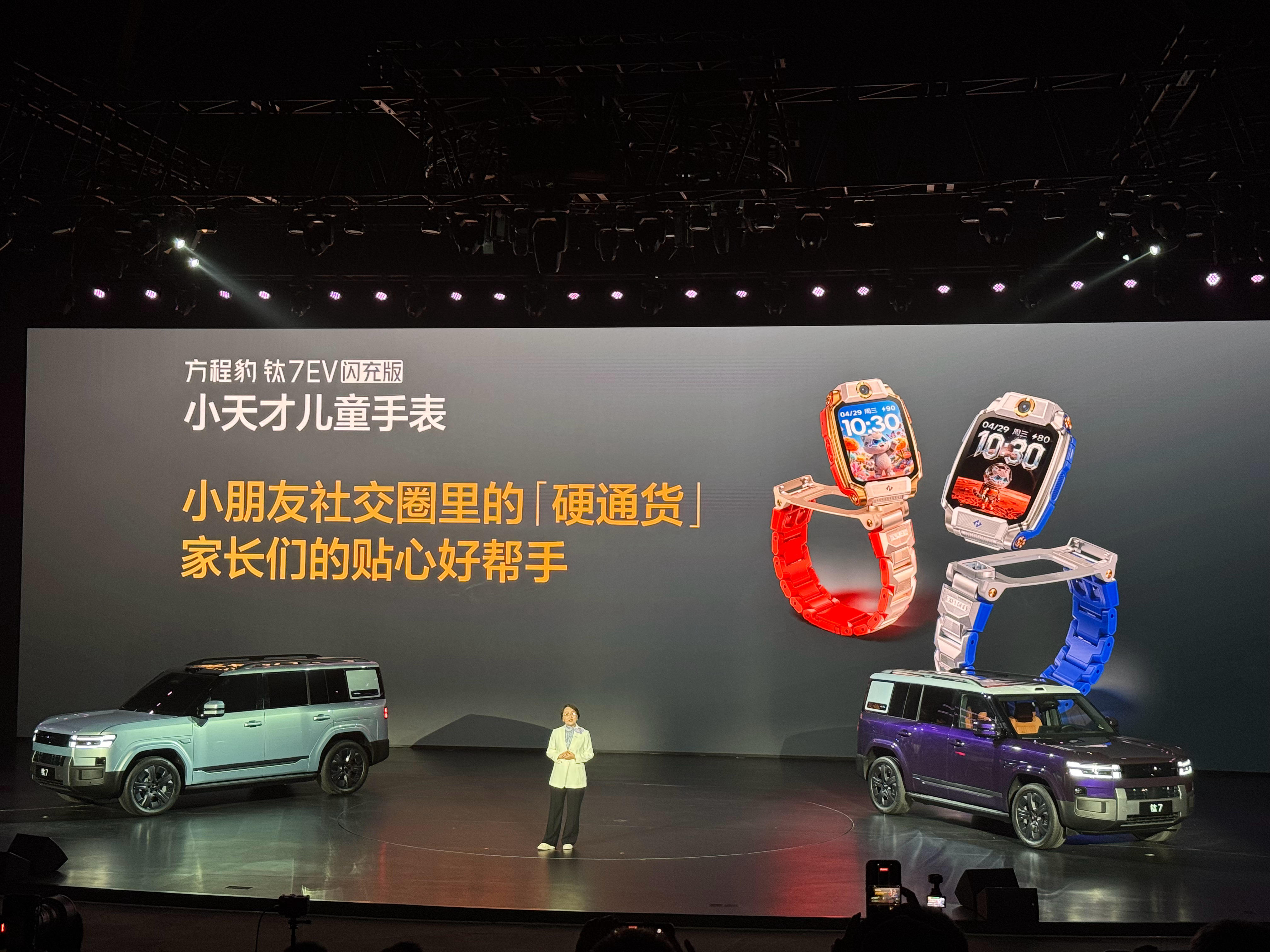 方程豹&肯德基,通过车机语音就可以直接下单KFC,方程豹钛7EV闪充版还和小天才电话手表合作,手表可以直接和车机互联。