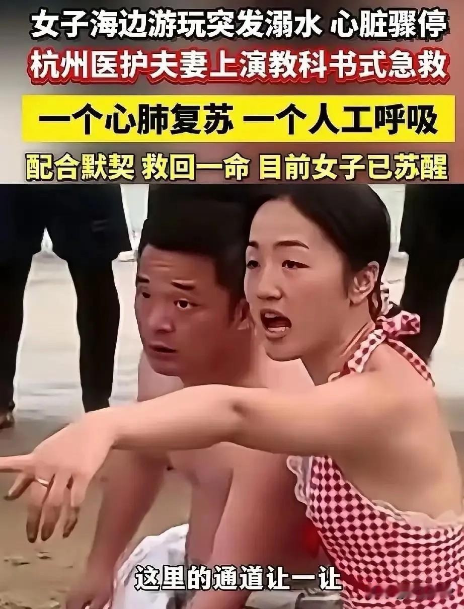 最动人的不是那4分钟,而是夫妻俩在专业配合中流露出的那种不需要言语的信任。姜智文负责按压节奏,袁苑负责通气与评估。他没有喊“你快点”,她也没有喊“轻一点”。沙滩上的慌乱人群里,这对夫妻就是彼此最稳定的坐标系。