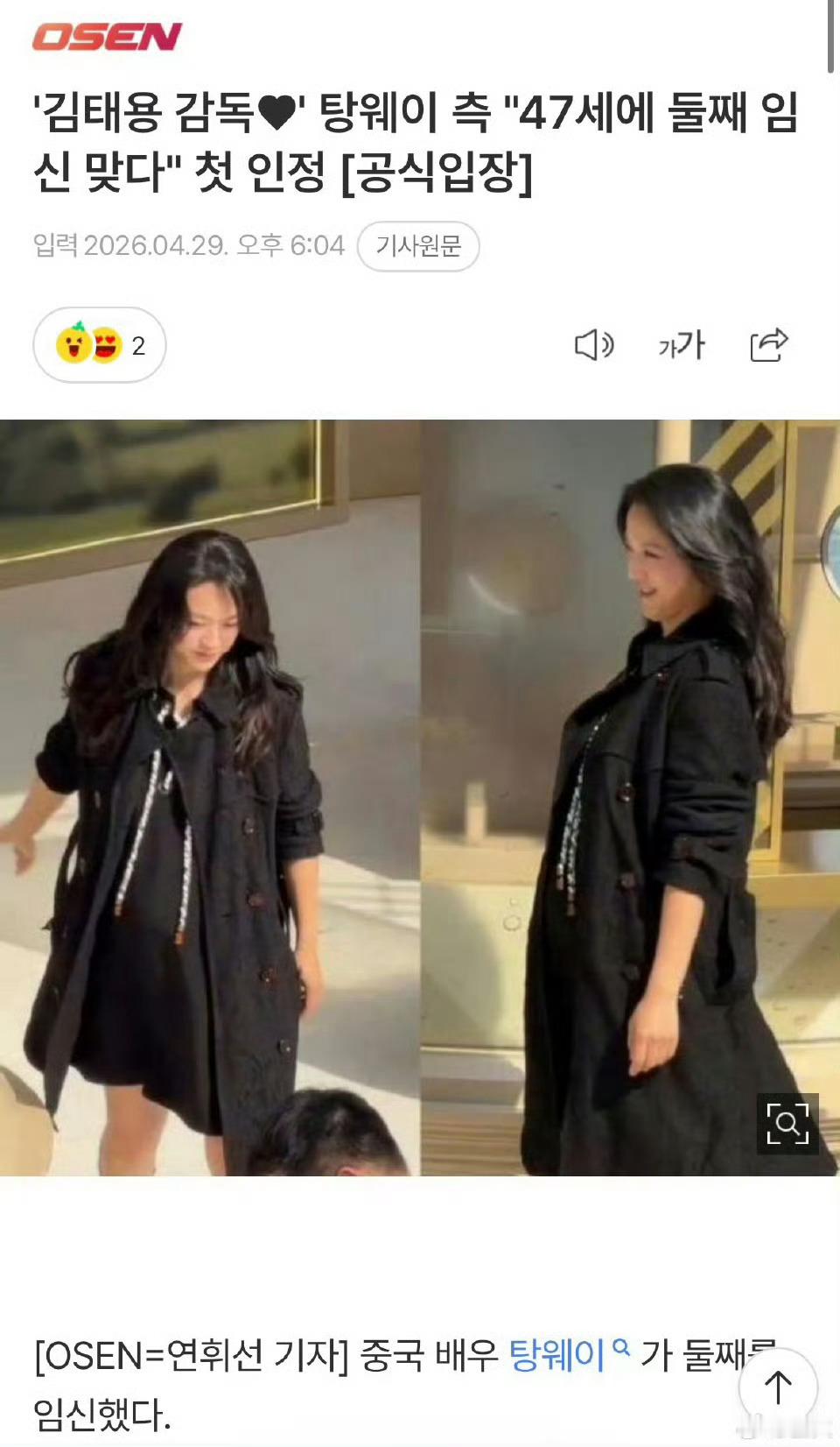 汤唯方相关人士表示“演员汤唯确实怀了第二个孩子。具体的生育时间和胎儿性别等是私人问题无法透露”。随后汤唯也在社交平台分享了这个好消息,恭喜恭喜呀~汤唯确认怀二胎汤唯方官宣二胎