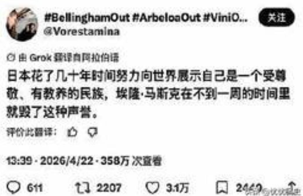 不少人认为,马斯克上线 AI 翻译,初衷只是为了方便全球网友无障碍交流,让不同国家的声音都能被更多人看见。他本人也公开表示,这项功能是为了让每一种语言的表达,都拥有走向世界的机会。但谁也没想到,最先被看透真实底色的,就是一直苦心经营完美形象的日本。