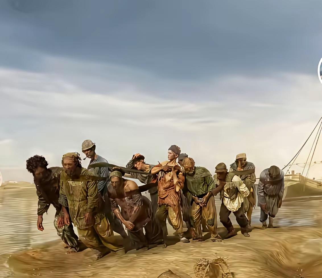 《伏尔加河上的纤夫》揭露的是俄沙皇统治下的黑暗和老百姓的苦难生活…