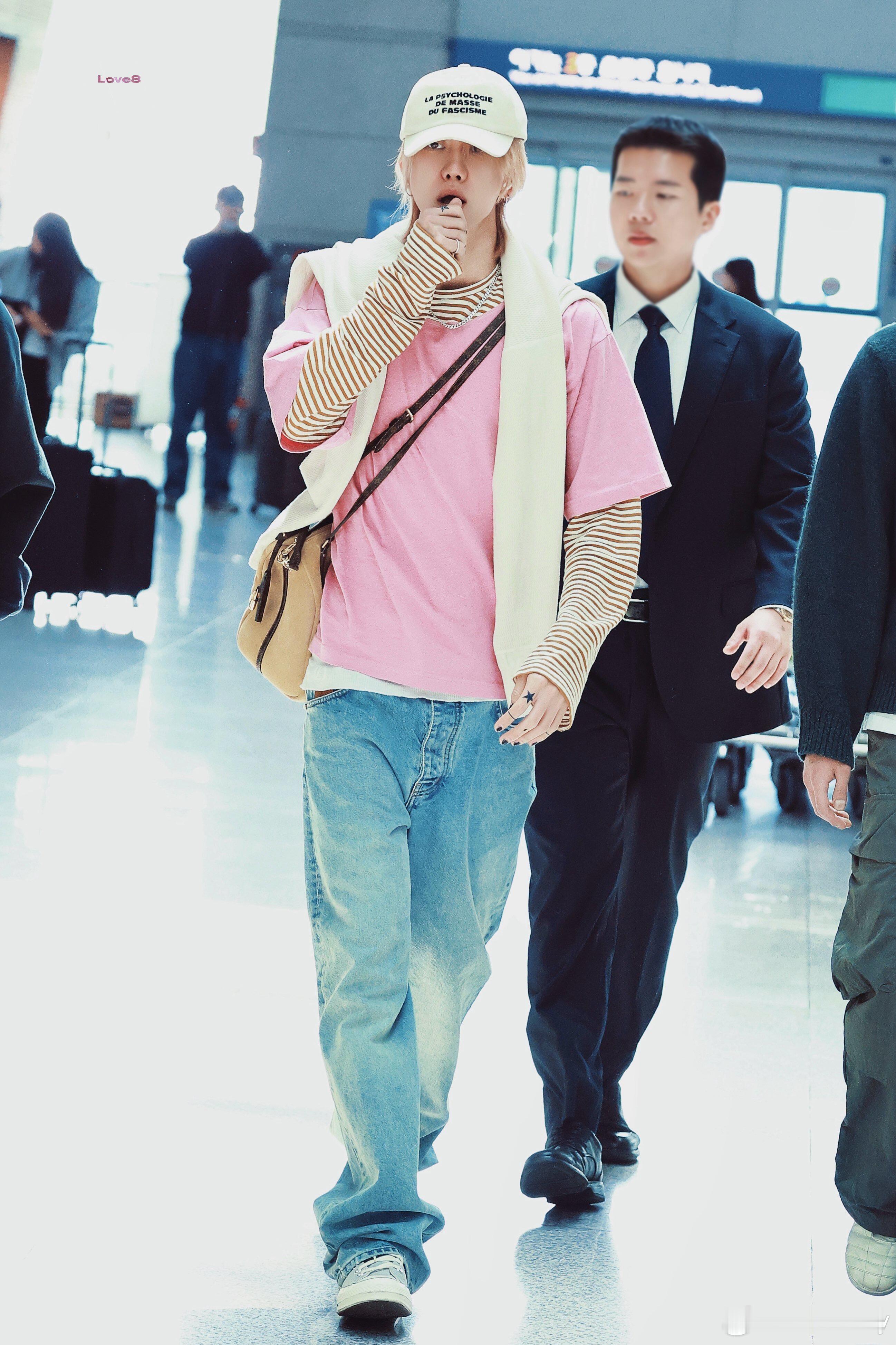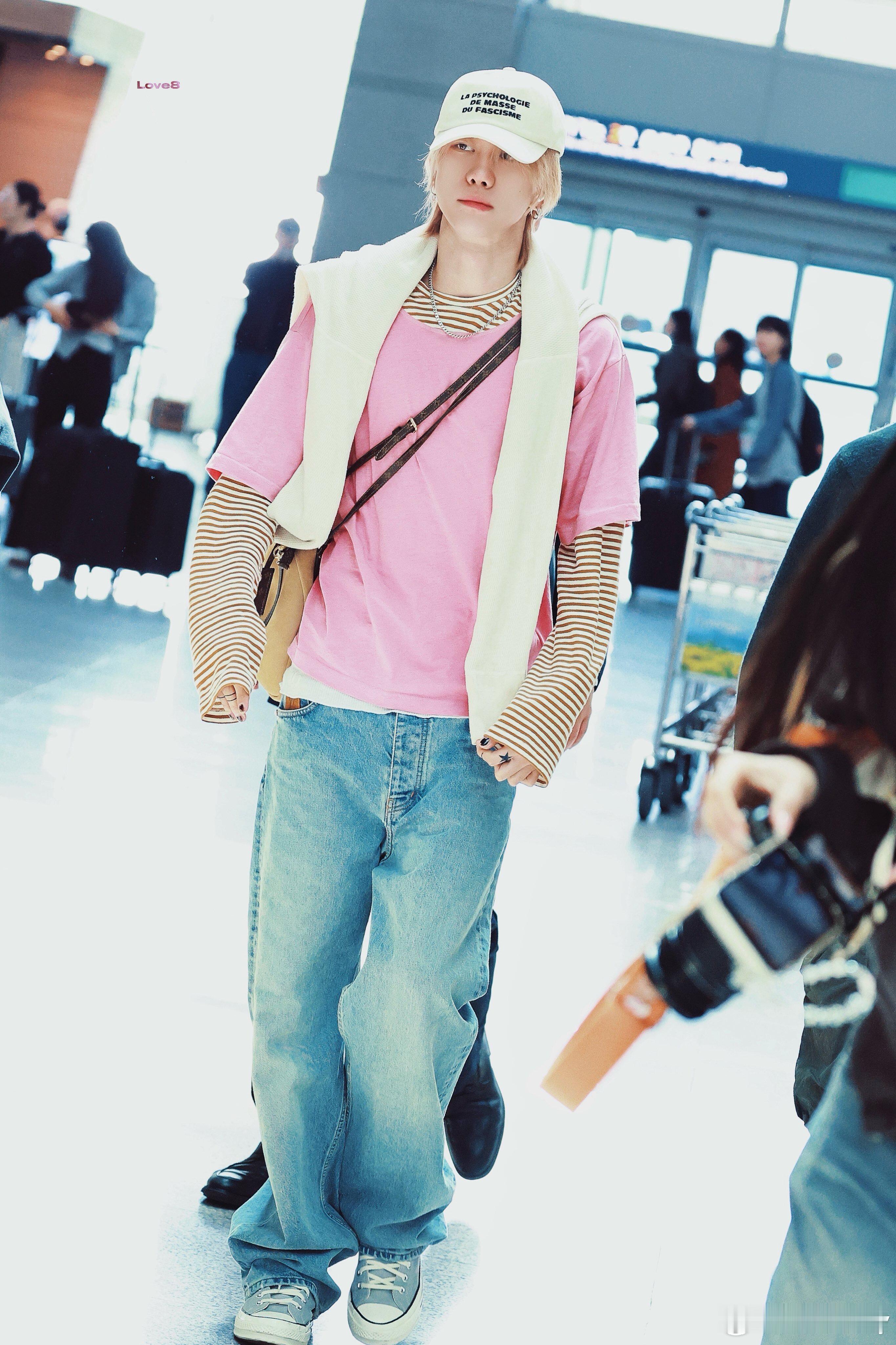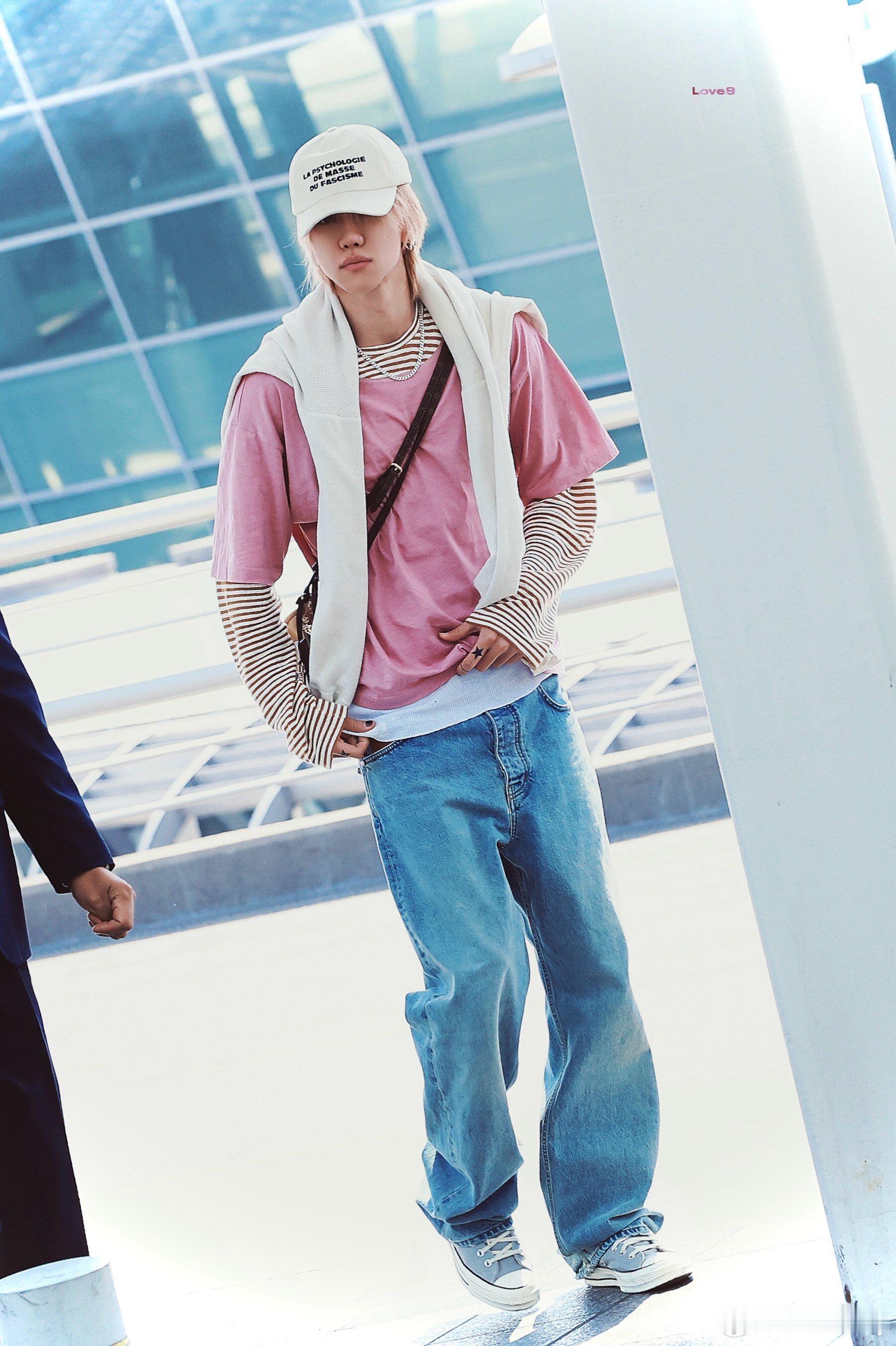 徐明浩4.30韩国✈️南京,想和8一起过51的心达到高潮!徐明浩今日机场路透,粉色+黄白条纹的层叠长袖T恤搭配出镜率极高的牛仔裤配帆布鞋,肩上还披着针织衫当作装饰,满满的法式度假甜心的味道~期待歌手徐明浩的南京音乐节