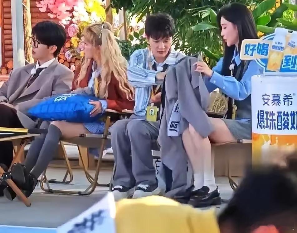 宋雨琦 跑男聪明人之间,一个眼神就够了。《奔跑吧》录制现场,孟子义穿着短裙刚坐下