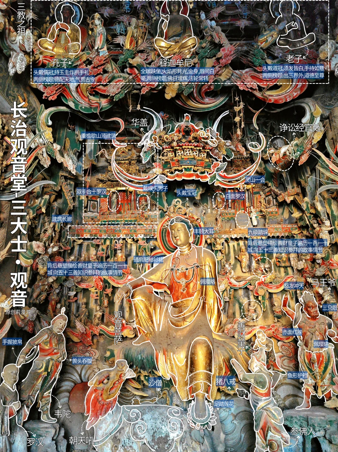 七个朝代的古建、彩塑和悬塑