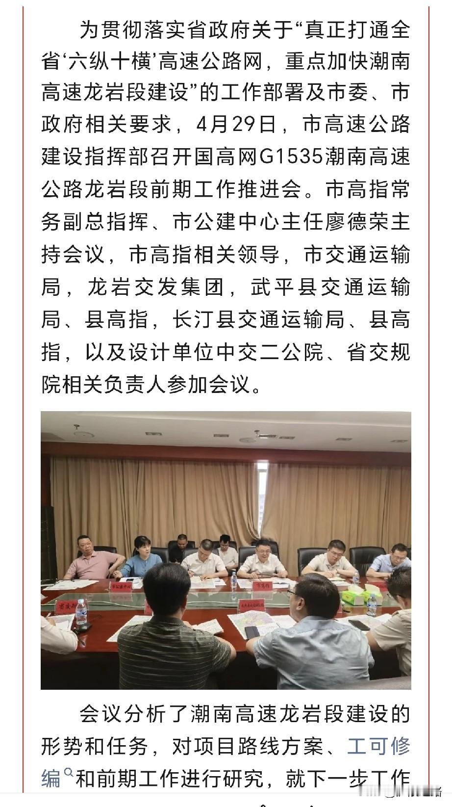 好消息!福建潮南高速公路龙岩段终于有新进展啦! 近日,G1535潮南高速公路龙岩段前期工作推进会盛大召开。 会议深入分析了潮南高速龙岩段建设的形势和任务,对项目路线方案、工可修编和前期工作展开了细致研究,明确了下一步工作方向。