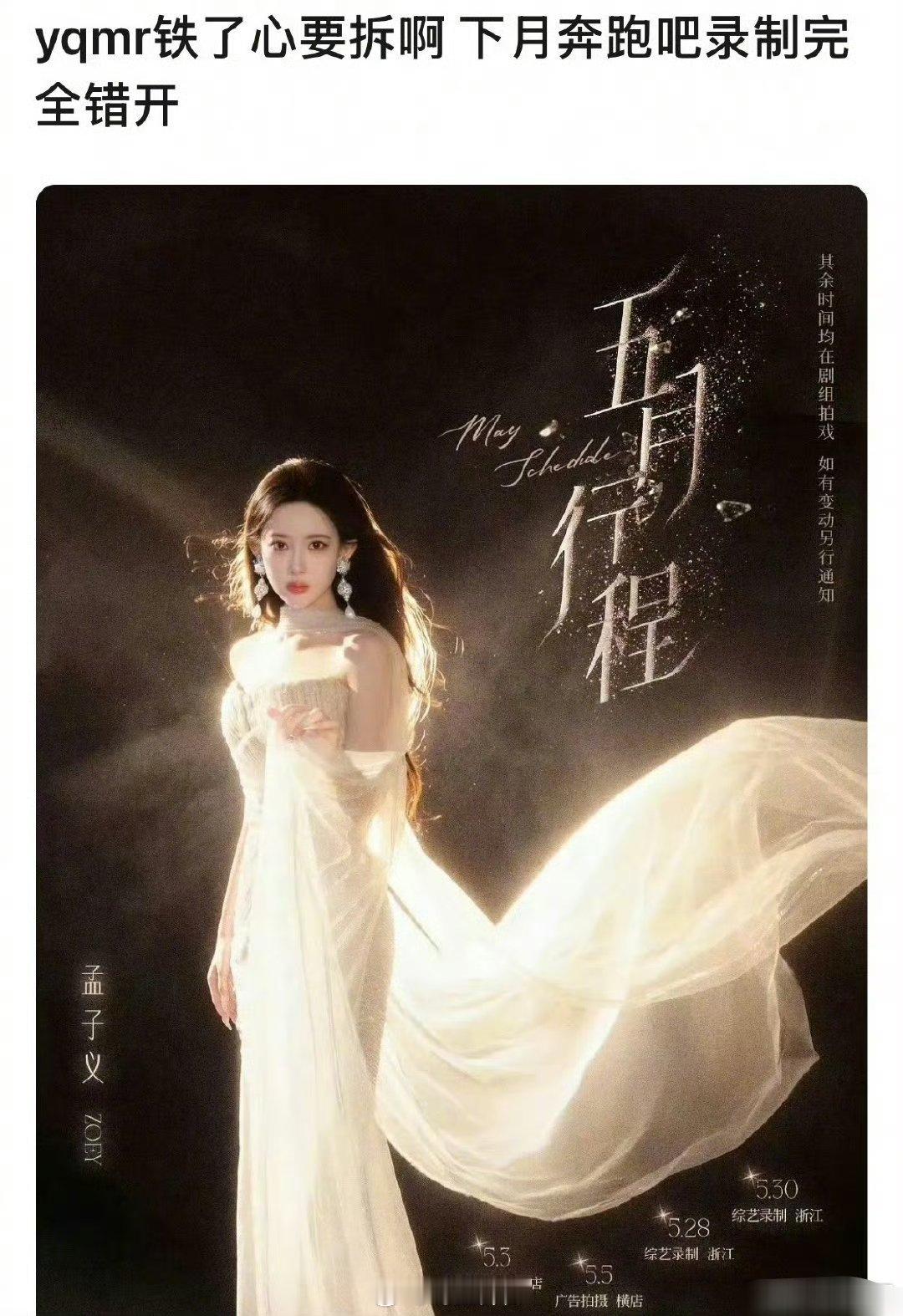 emmm,突然发现孟子义跟李昀锐这两位五月份录制跑男综艺的时间都是错开的,看来真的是下定决心要拆CP了啊