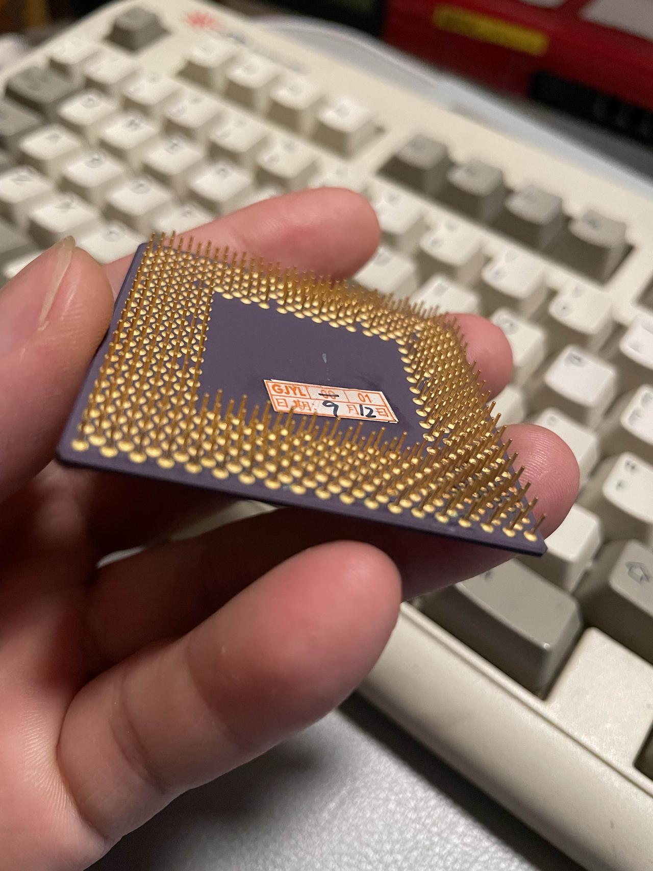 现在它躺在我的手心,紫陶外壳上的字还清晰,只是当年的雷霆早已平息。我把它和之前淘的486摆在一起,忽然觉得这些旧CPU哪里是废件,分明是一块块被时光打磨过的、属于旧时代玩家的勋章。