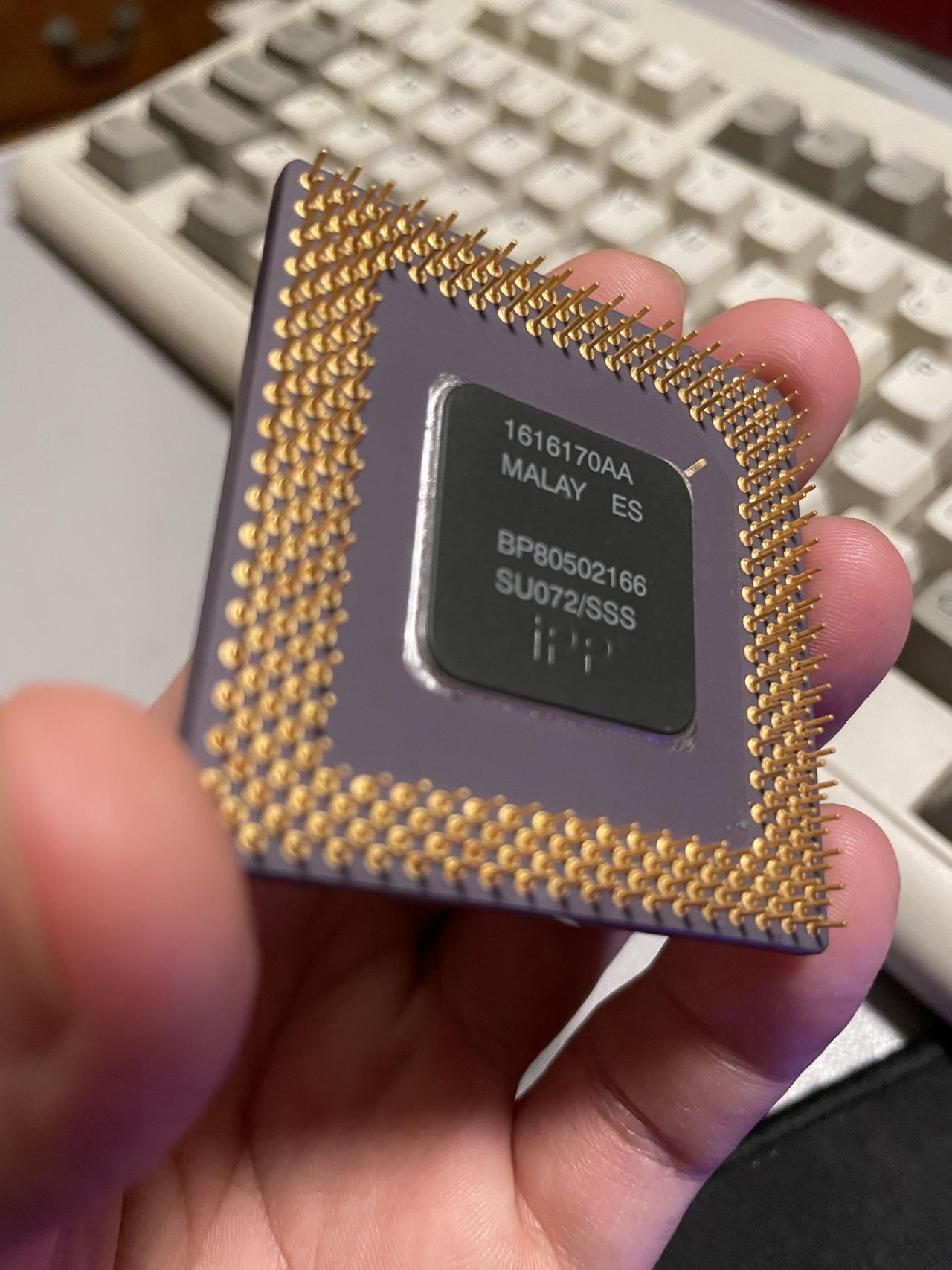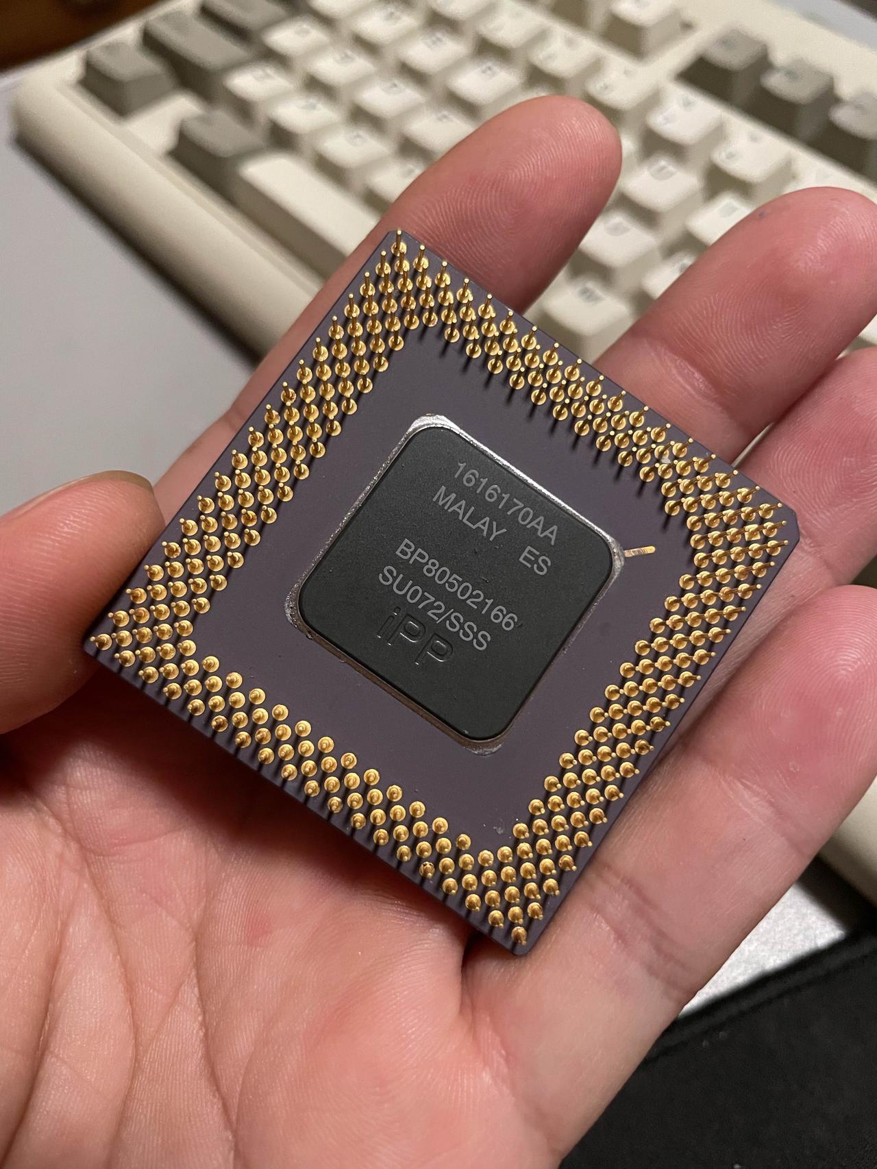 今天在广州鬼市花了50元淘了这颗Intel Pentium 166,1993年的老奔腾,印着经典的“intel pentium”标识,底部的型号码和年份戳,是它身份最硬的证明。摊主说,当年这可是“神机”的标配,攒够工资咬咬牙拿下,回家配上主板、硬盘,风扇转起来的嗡鸣,就是当时最动听的声音。
