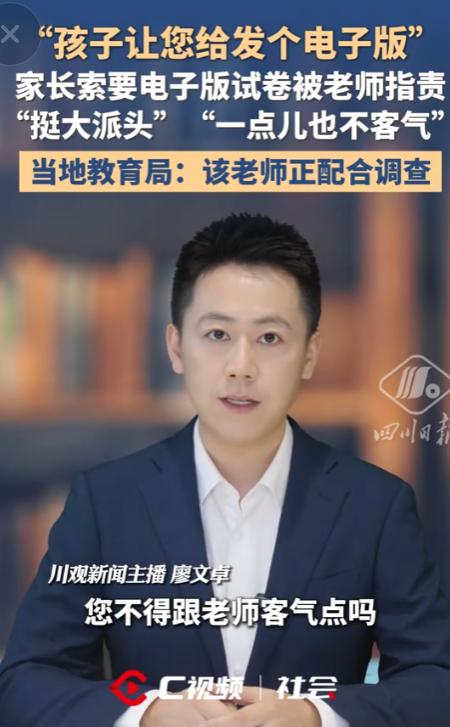 九派教育-2026-04-23-家长索要电子版试卷,老师翻脸:派头太大,没礼貌!录音曝光,网友吵翻...官方介入:老师正配合调查