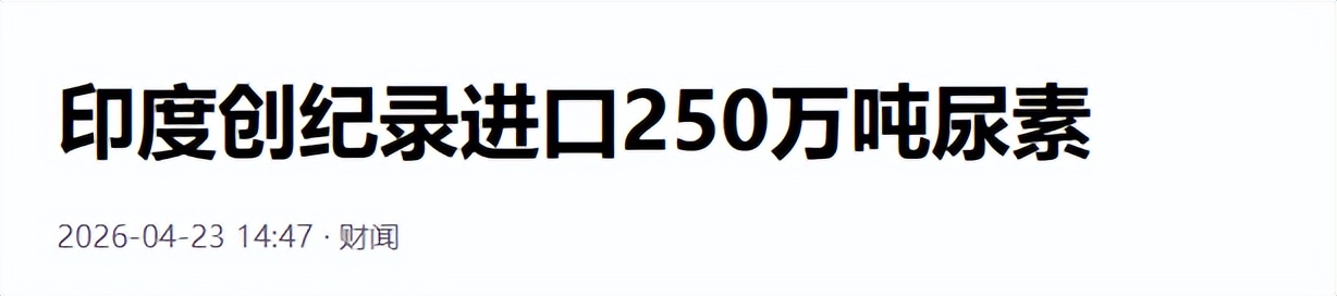 印度创纪录进口250万吨尿素——财闻