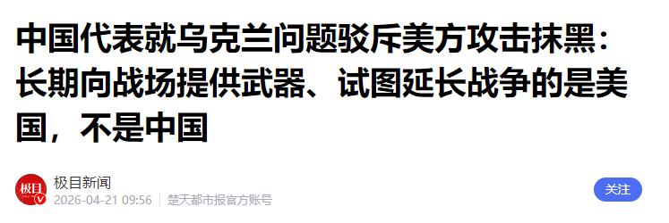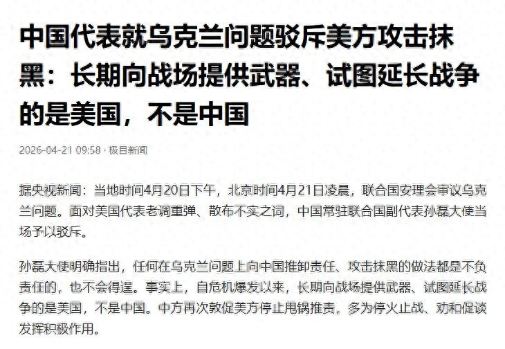 中国代表就乌克兰问题驳斥美方攻击抹黑:长期向战场提供武器、试图延长战争的是美国,不是中国——极目新闻