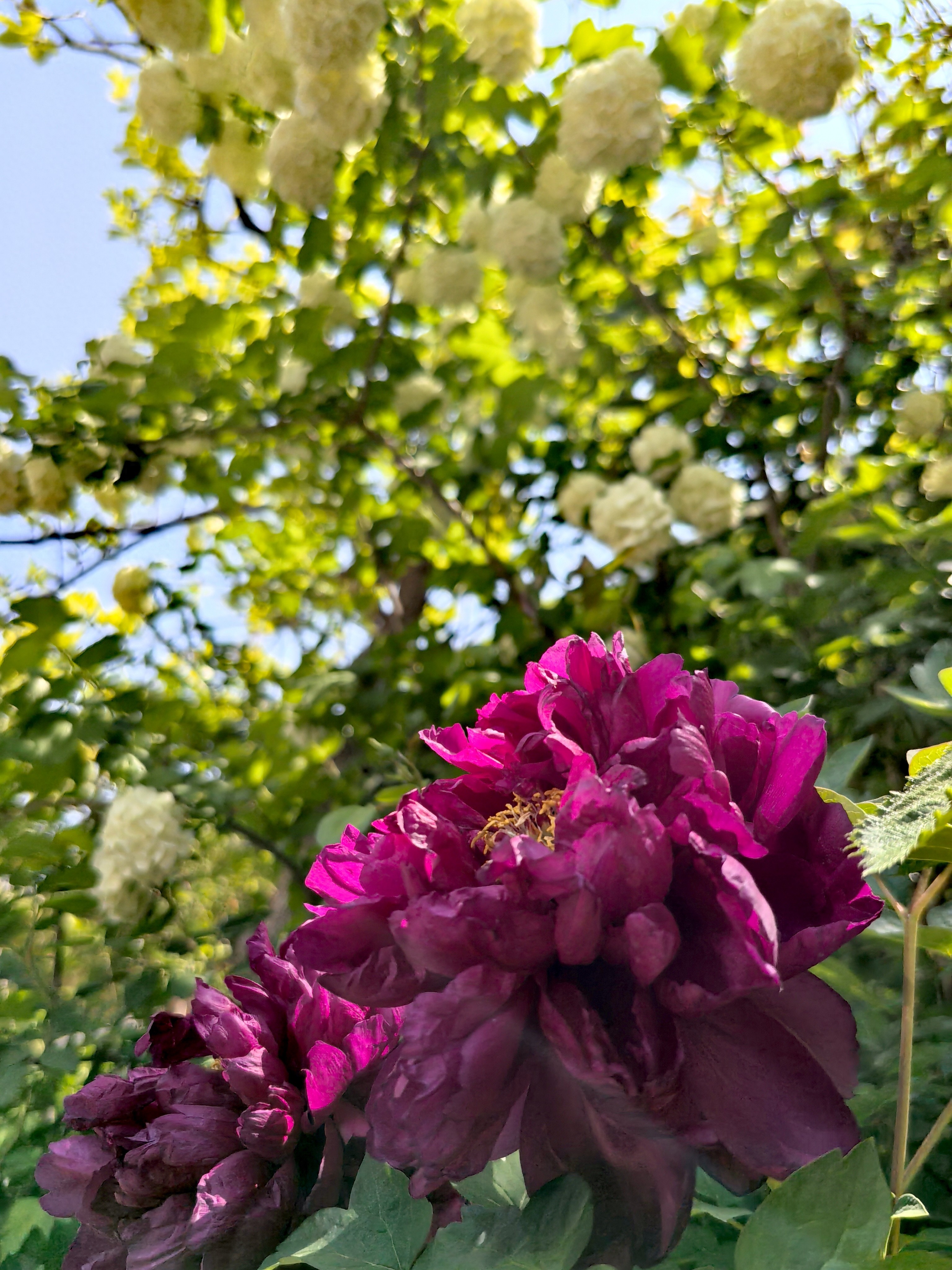 我于是退开一步,将目光重新放远。看那华贵的牡丹,倚着沧桑的红墙,是一种圆满;看这静雅的绣球,托着一点偶然的、滴翠般的生命,是另一种圆满。前者是人间秩序的颂歌,后者是天地偶然的低语。而美,大约正在这“必然”与“偶然”之间,在那堂皇的展示与这不期而遇的私语之间,丰盈地流淌着。