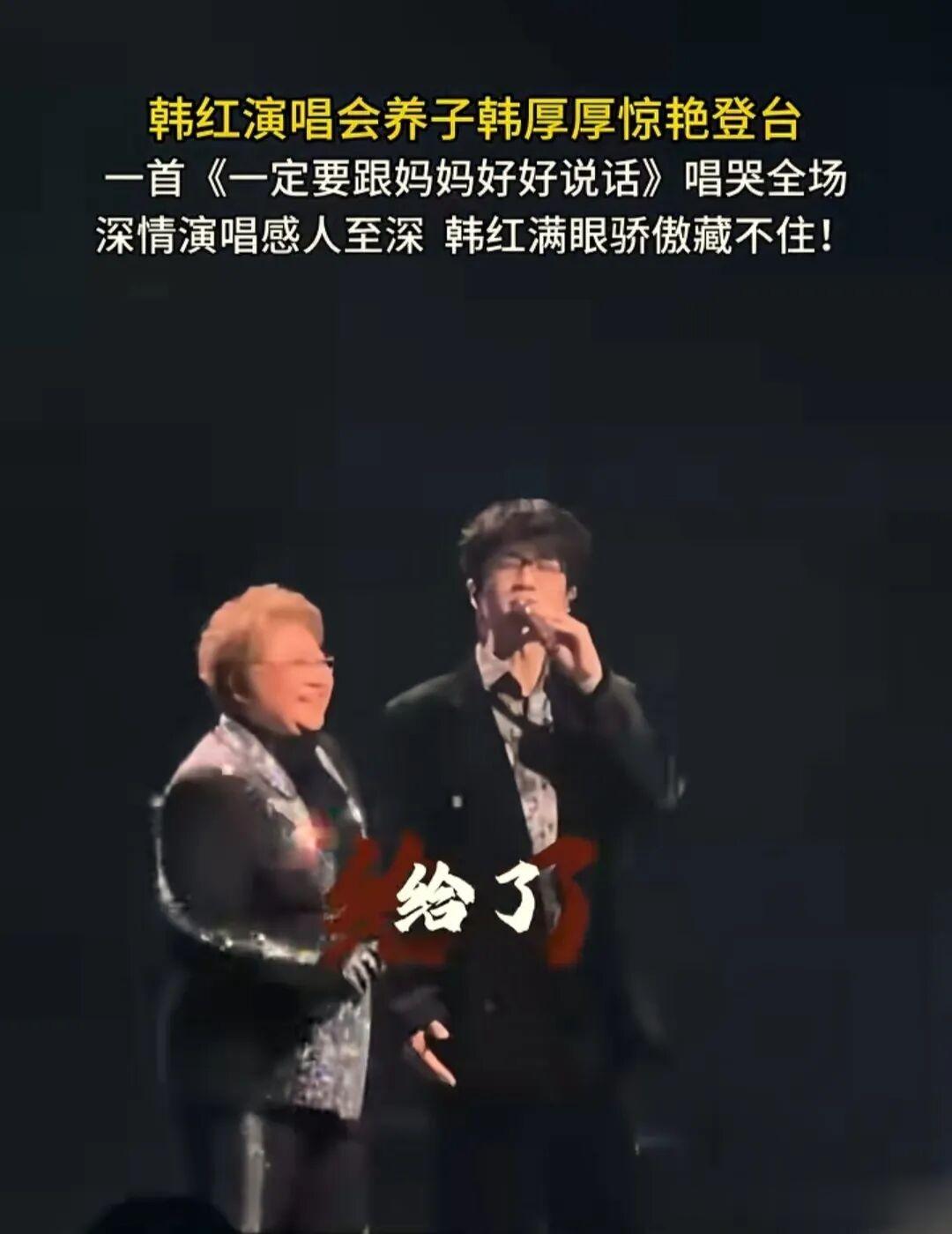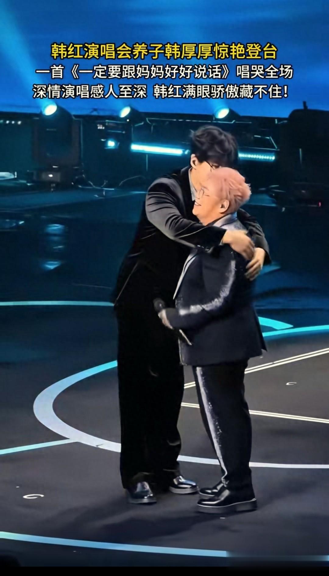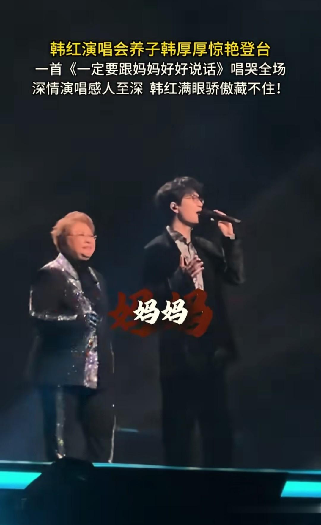 韩红演唱会养子韩厚厚登台和妈妈一起唱歌。一首《一定要跟妈妈好好说话》唱哭全场。