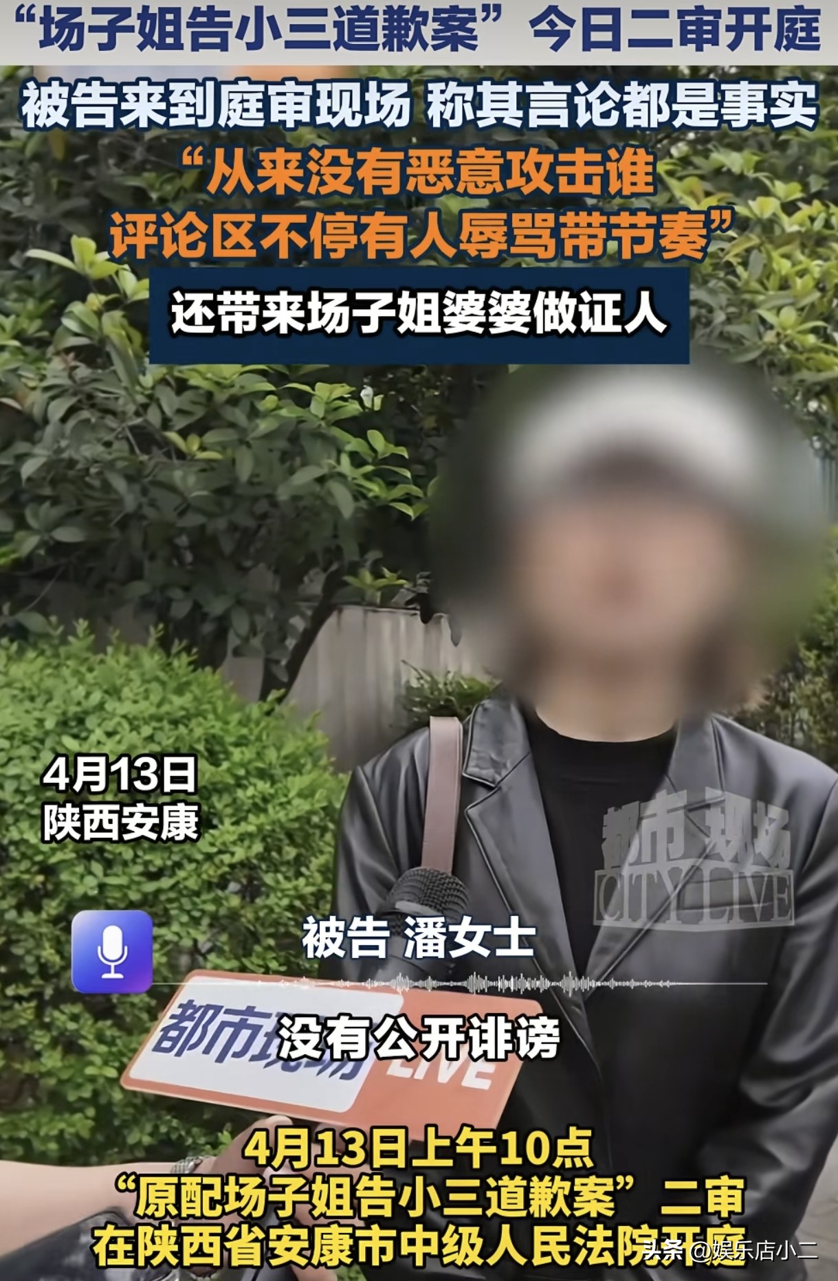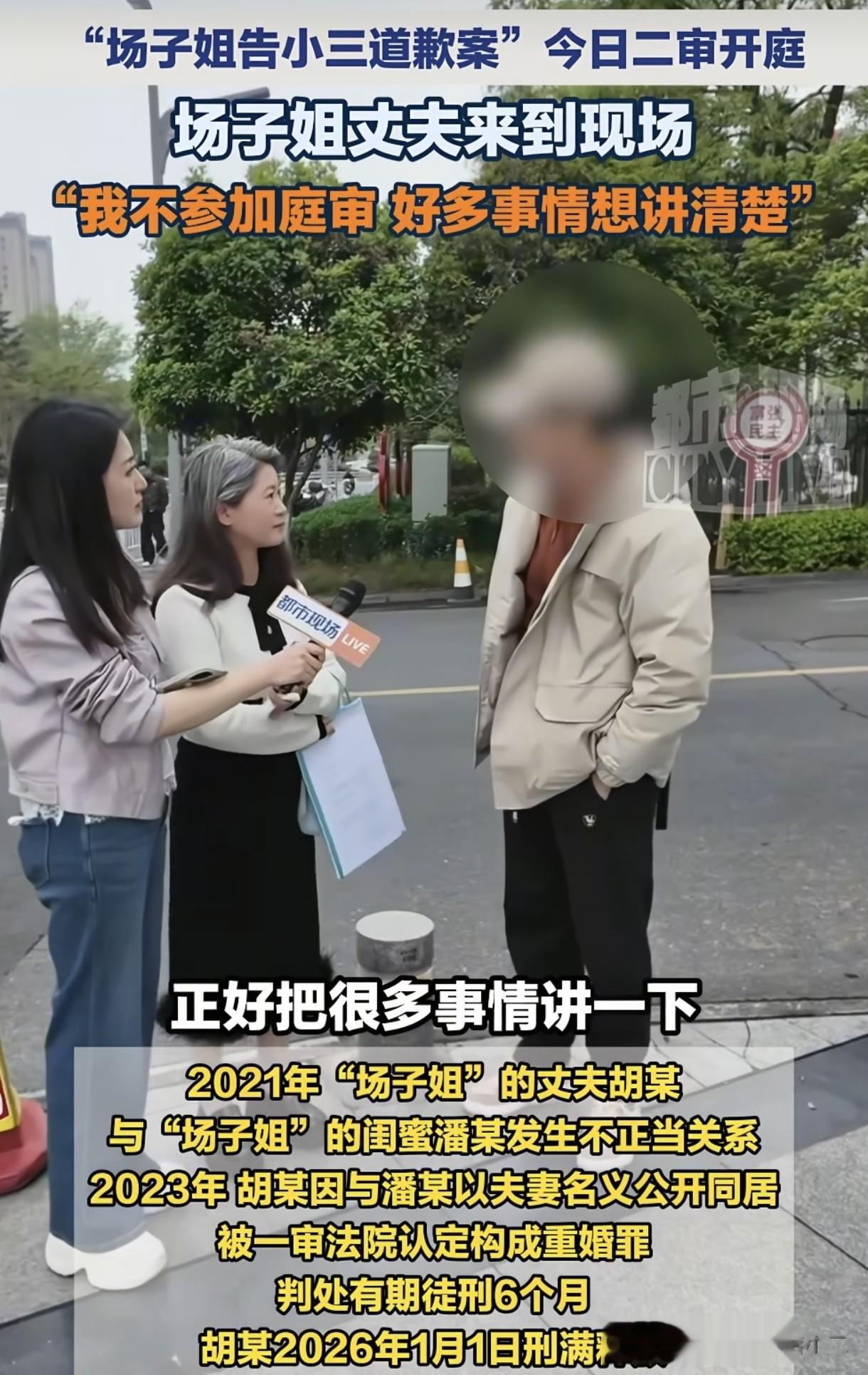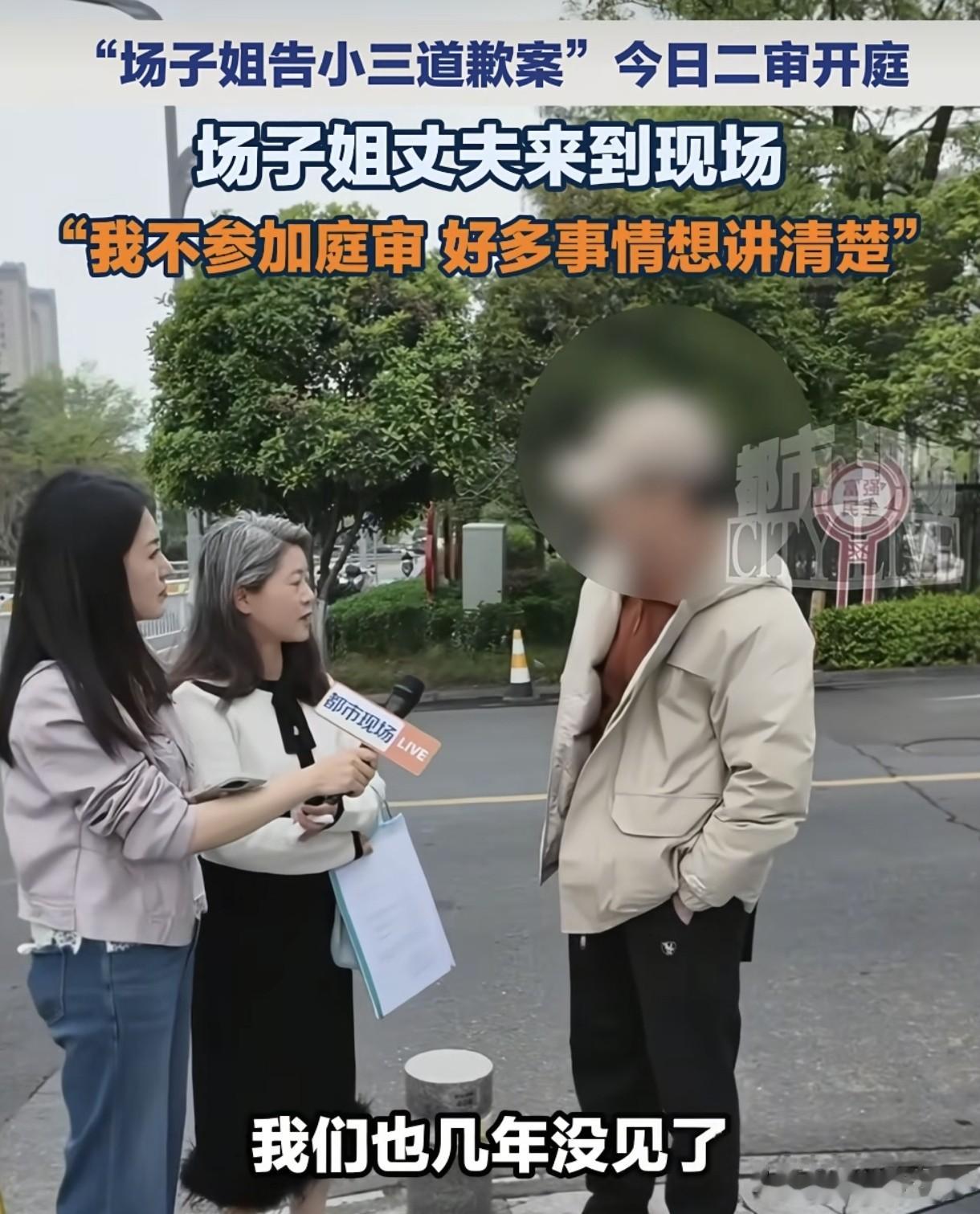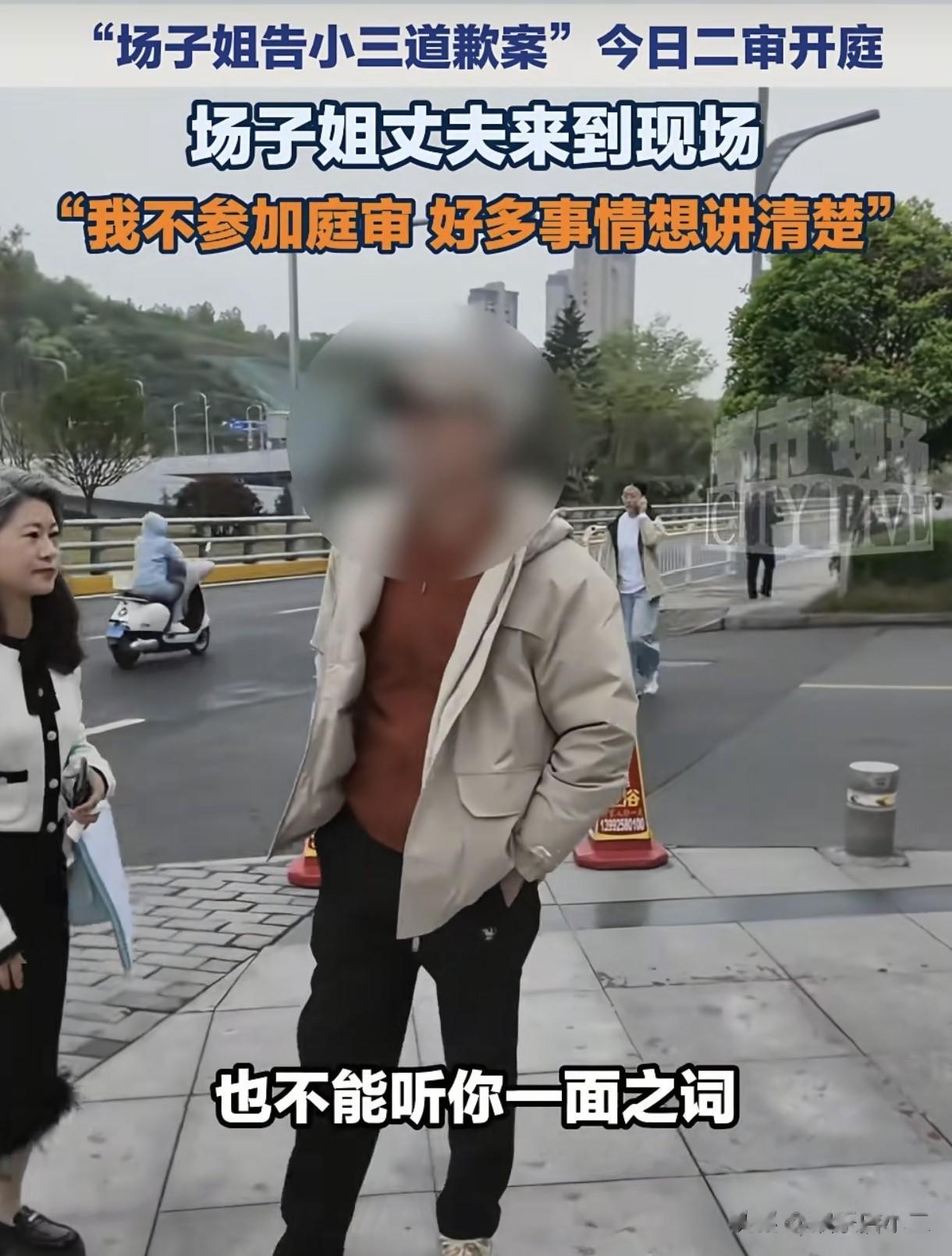 场子哥出现在现场场子姐状告第三者潘某道歉案二审今天上午10点开庭。