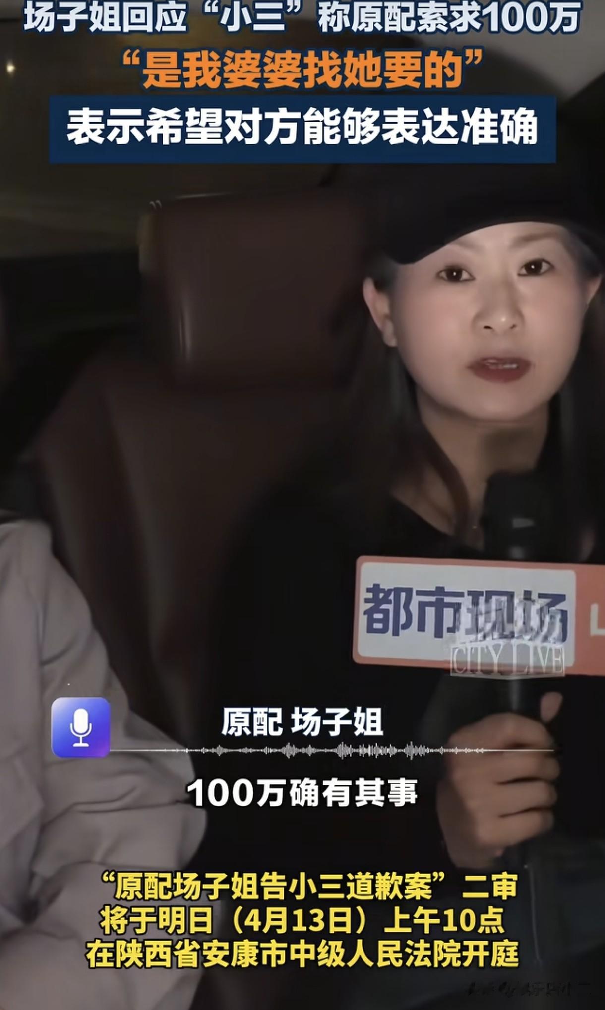 场子姐的婆婆突然“反水”,她站出来为第三者潘某作证,说场子姐逼她问潘某要100万。