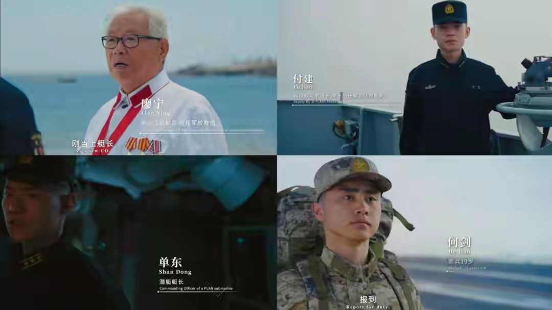 整个宣传视频里,先后登场了四位核心人物,分别是教员廖宁、潜艇艇长单东、副航海长付建,最后登场的,是一名刚入列、满脸稚气的19岁新兵,他的名字叫何剑。