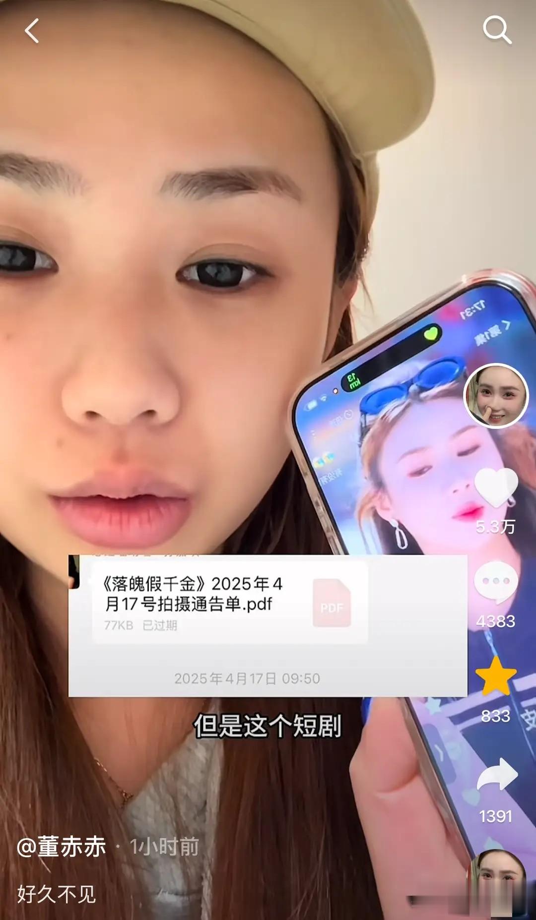 同时,她还透露,在2025年4月份,接到一部名为《落魄假千金》的剧本,剧本拍摄的很顺利,剧本杀青后原本以为大功告成了,可没到意外事件发生了。