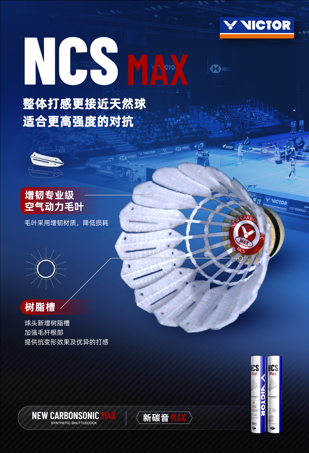 新碳音Max采用增韧专业级空气动力毛叶,通过增韧材料的使用提高耐打度,降低用球损耗。此外,还在球头新增树脂槽,提高胶水用量,从而加强毛杆根部,带来抗变形效果及优异打感,更耐重杀。新碳音Max整体打感更接近天然球,适合更高强度的对抗。