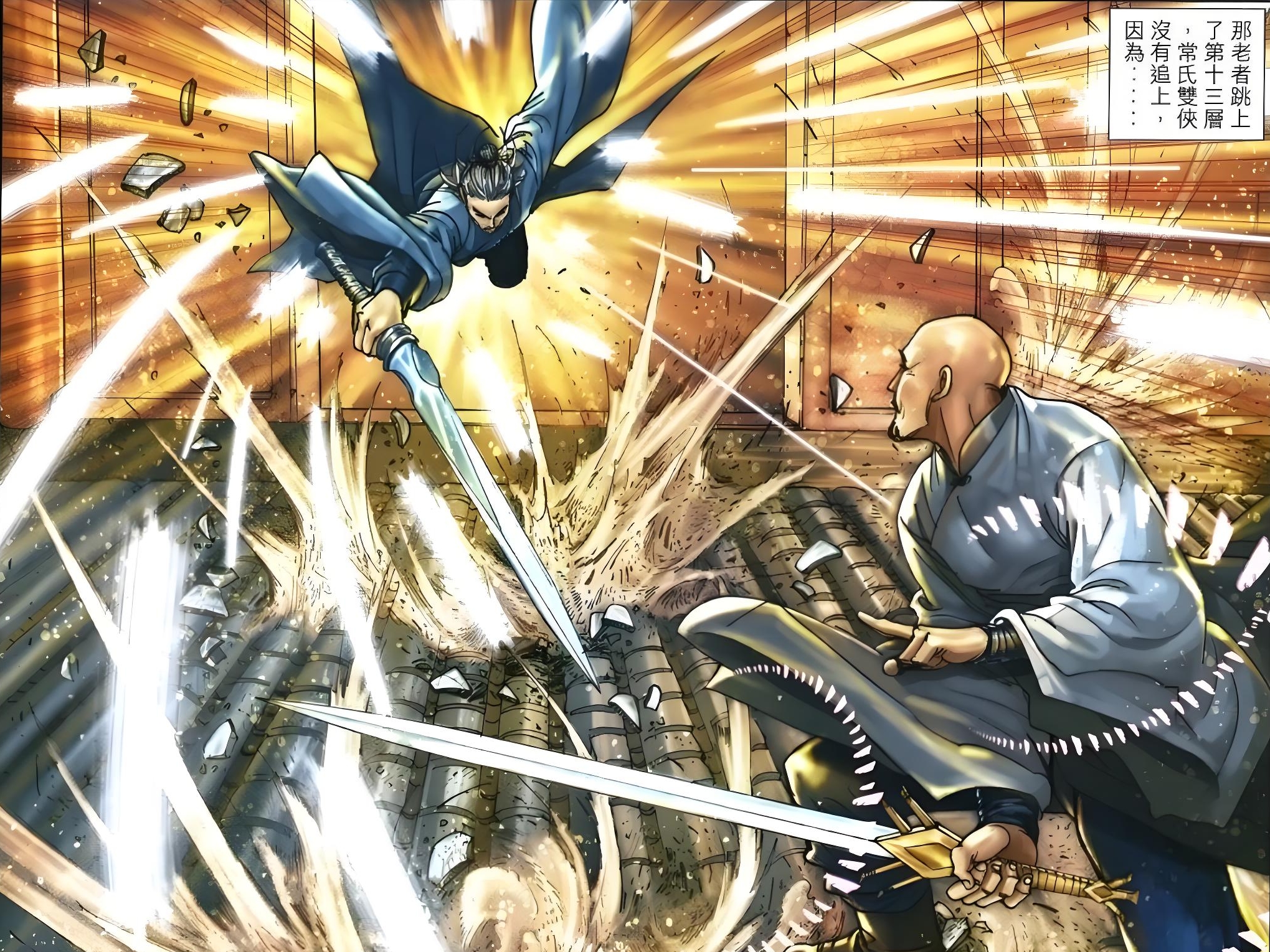 再是六和塔之战,无尘的表现也是强过了陈正德一筹。当时两人从十三层楼往下跳,陈正德以轻功扑到第六层,再落到第五层,轻功无比高明;无尘却没用轻功,手脚并拢直落,快落到四层时以长剑贴住塔檐,再以剑身反弹借力落到五楼。这一下看似没有陈正德的轻功出众,但却能无尘看出轻功、内力、剑法、胆识之高,连好胜要战的陈正德都不敢再有半分轻忽。