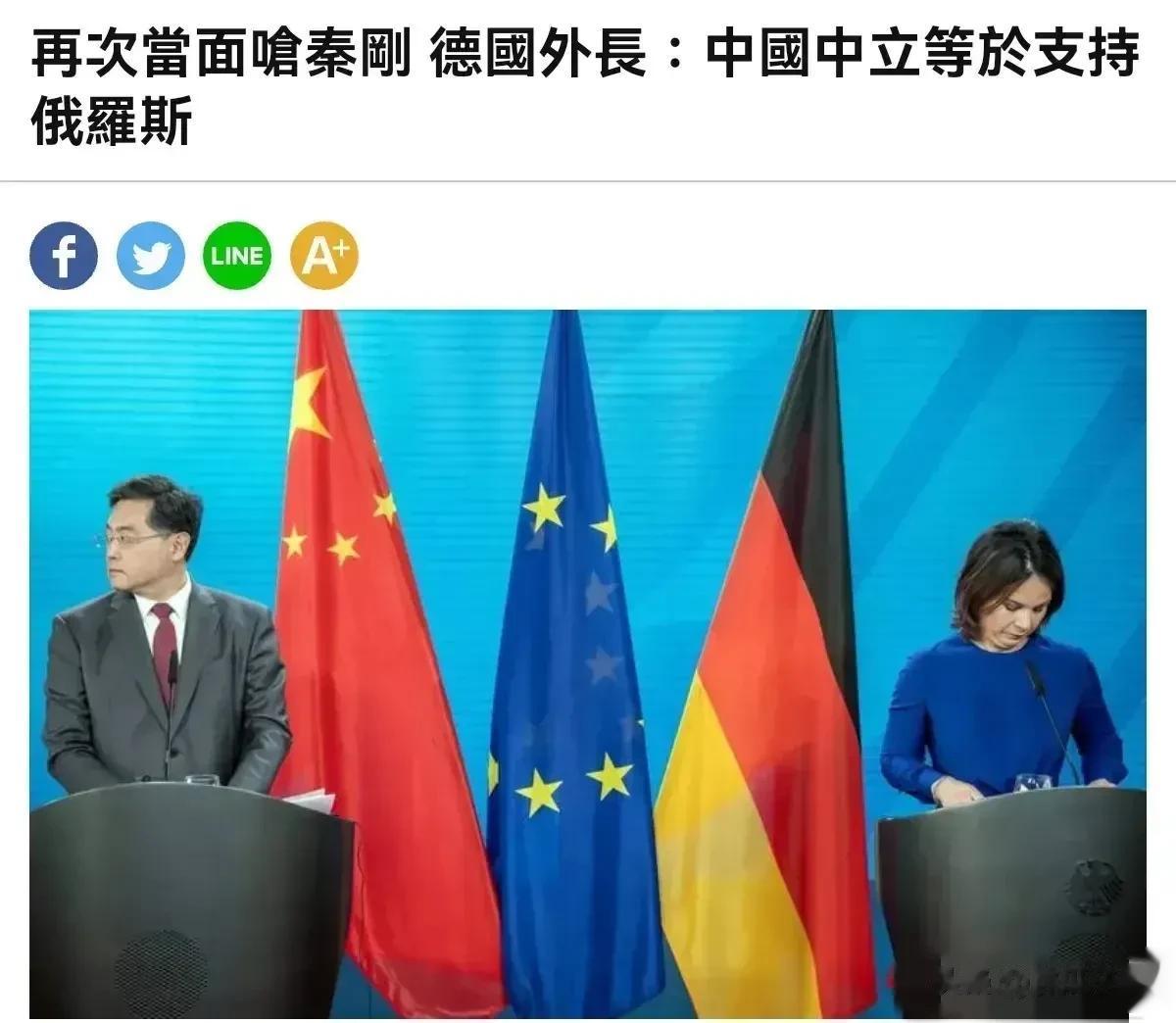 德国外长贝尔伯克当着中国外长秦刚的面,警告说,俄乌战争没的中立这个选项,如果中国