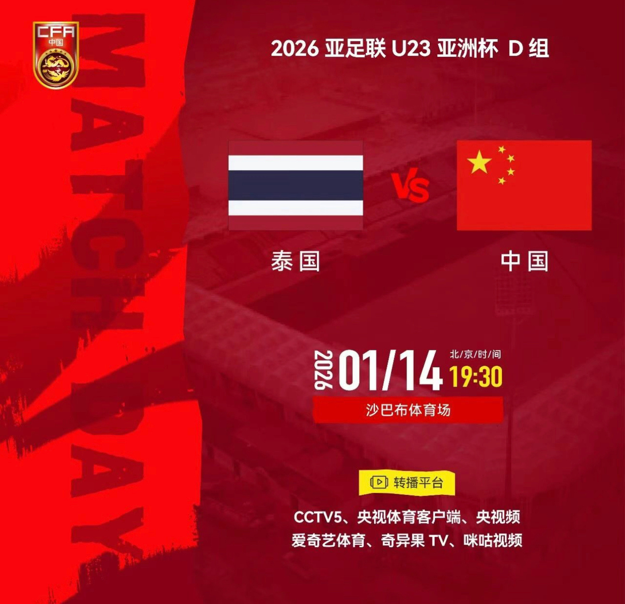 U23国足vs泰国U23北京时间1月14日晚,中国U23在U23亚洲杯中0-0战