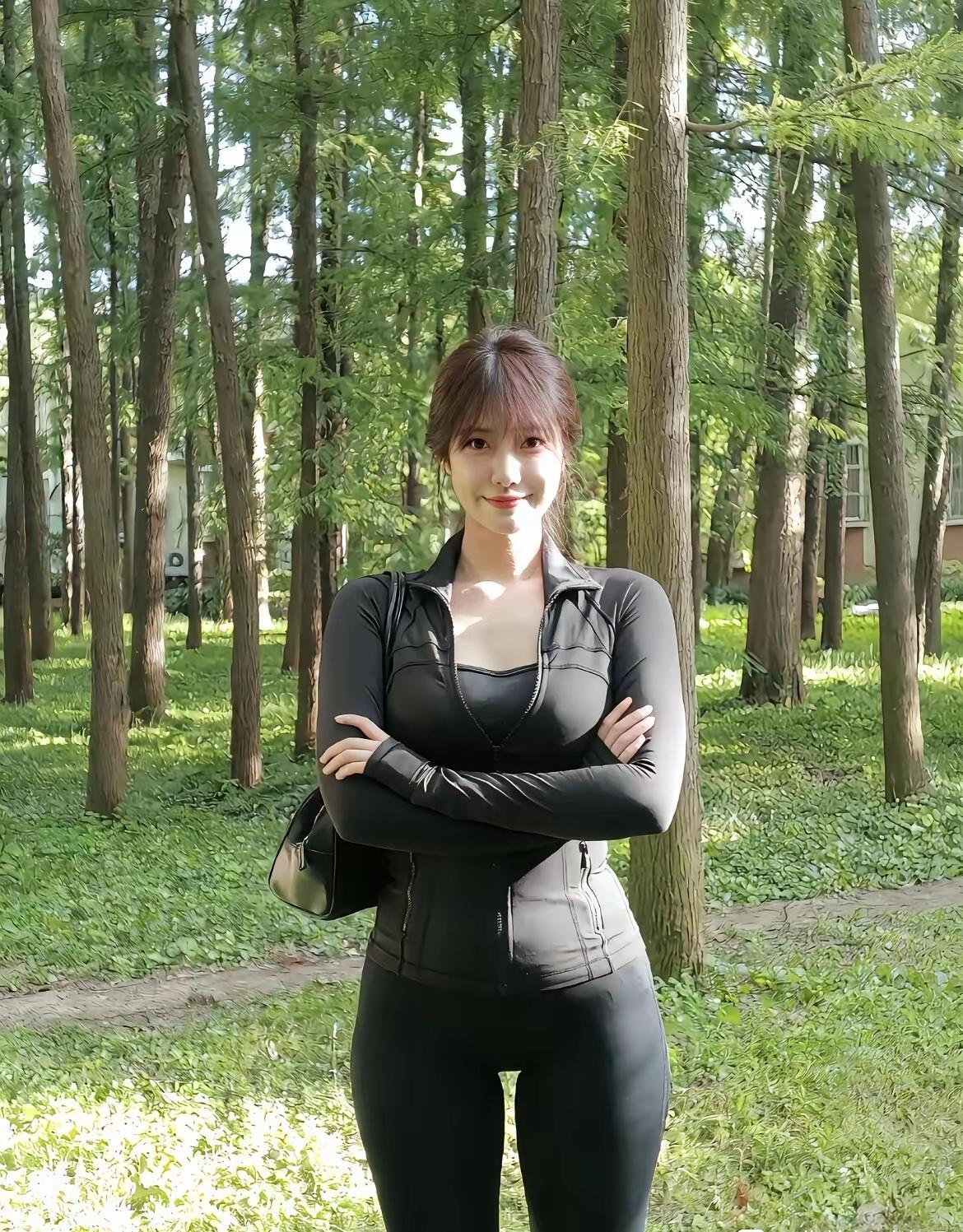 森林中的时尚少女,耳机与背包的完美搭配,享受音乐与自然的双重乐趣。🎧🍃👗