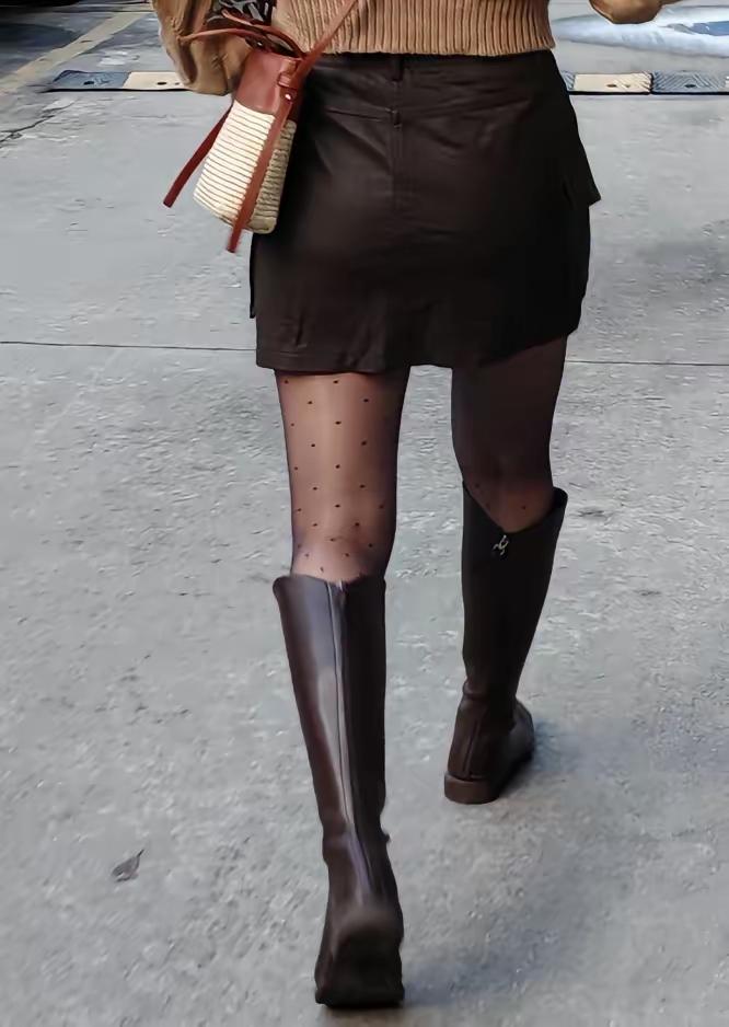 复古风穿搭,黑色高筒靴搭配丝袜,时尚又优雅!