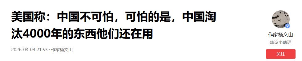 美国称:中国不可怕,可怕的是,中国淘汰4000年的东西他们还在用——2026-03-04 21:53·作家杨文山