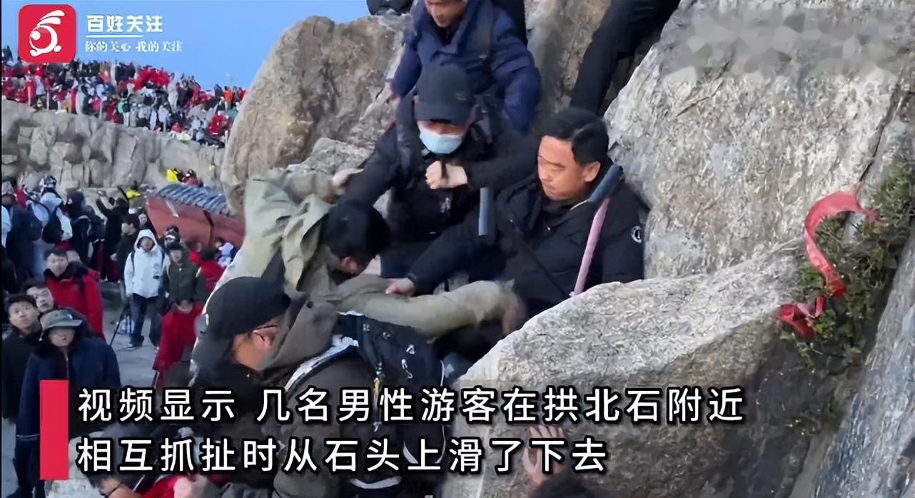 要知道,泰山并不是平地,周围是陡峭的石壁但凡滑落,根本没有任何东西让人受力拉住,怎么会不惊险。