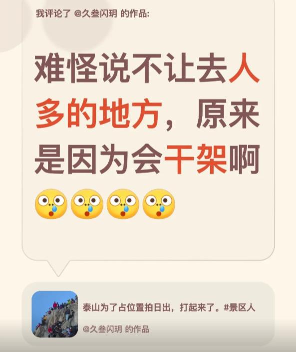 说到底,爬泰山看日出,图的是舒心放松,赏的是自然风光,拼的不是谁能抢前排,更不是谁更蛮横能打架,反而得不偿失。
