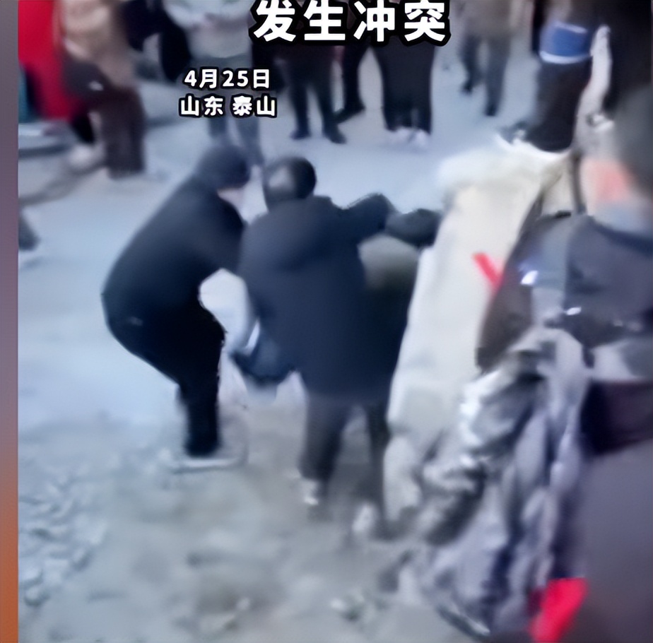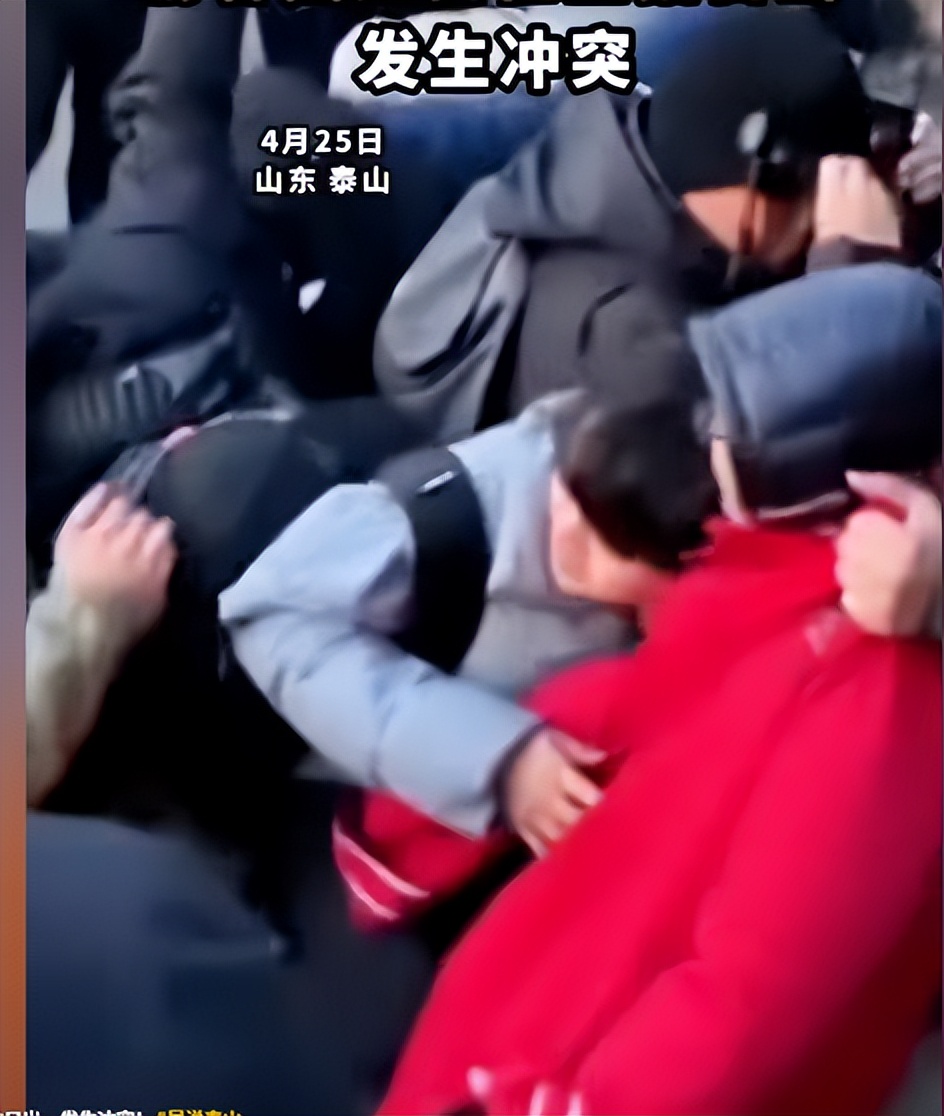 泰山山顶观景台,一群游客只为争抢前排拍照站位,几句口角直接激化矛盾,当场动手拉扯互推。