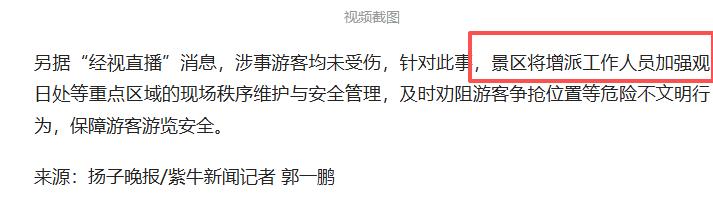 提前劝阻抢位、推搡、扎堆拥挤等危险不文明行为,全力守住游客游览安全底线,杜绝同类斗殴闹剧再次上演。