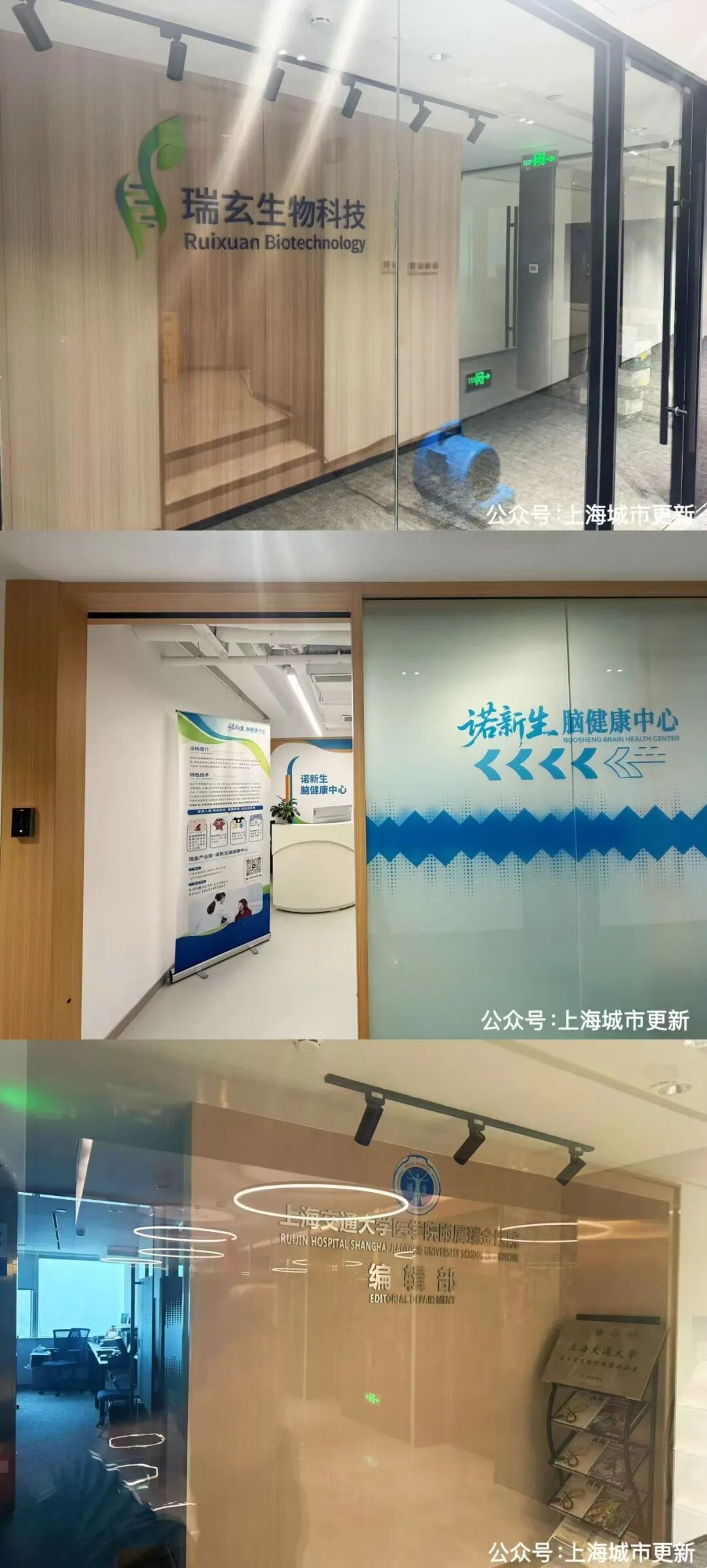 下图:位于48层的瑞玄生物科技、诺新生脑健康中心和上海交通大学医学院瑞金医院编辑部(图源:笔者拍摄)