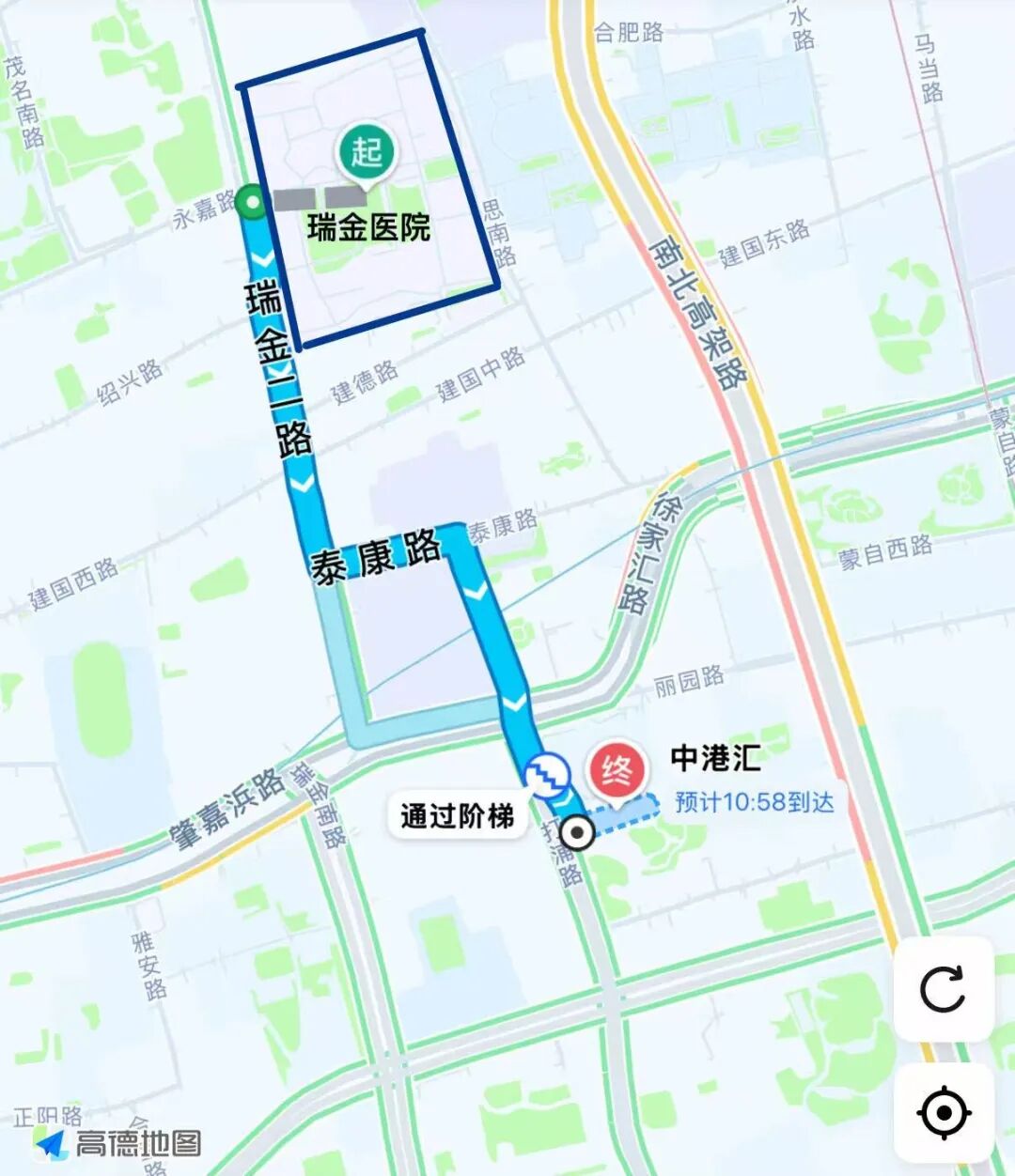 下图:从中港汇·黄浦步行到瑞金医院仅需17分钟(图源:笔者编辑)