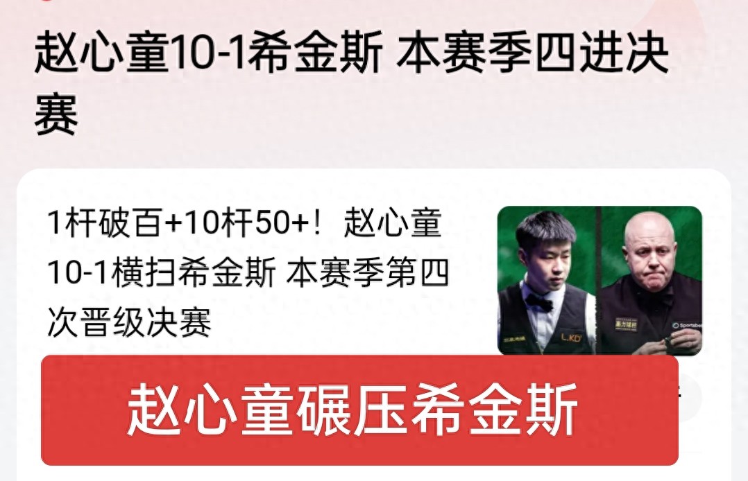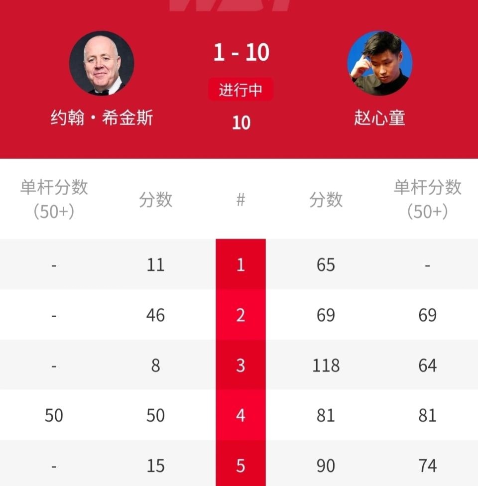 本场比赛赛前,外界普遍认为这是一场势均力敌的较量,希金斯作为斯诺克界的传奇老将,经验、控球能力堪称顶级,即便赵心童本赛季状态火热,也没人预料到比赛会呈现一边倒的局面。可从开球的第一杆开始,赵心童就彻底掌控了比赛节奏,用极致的进攻火力,把希金斯打得毫无还手之力,创下了希金斯职业生涯抢10赛制的最惨失利纪录,这场碾压式胜利,直接引爆了斯诺克球迷圈!
