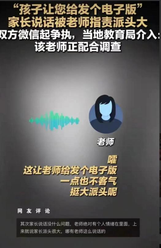 在很多老师眼里,“我是老师,我管着你孩子,你得求着我”。这种根深蒂固的权力思维,导致老师在面对家长的正常请求时,第一反应不是“解决问题”,而是“维护尊严”。家长用了一个不太顺耳的措辞,立马被解读为“冒犯”“命令”“把我当服务人员”。