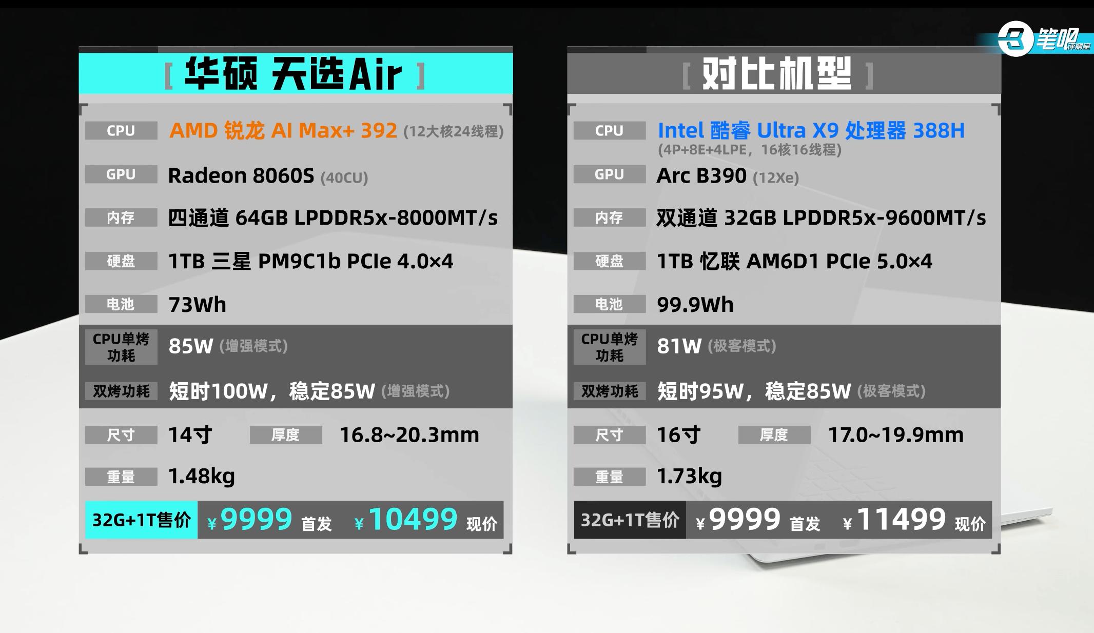 2026年x86阵营笔记本旗舰大集显竞争进入白热化,AMD锐龙AI Max+ 392与Intel Arc B390两款处理器要怎么选呢?笔吧评测室的深度解析让这场旗舰对决更清晰。两款处理器各有技术绝活,下面就结合笔吧针对华硕天选Air 2026的实际体验,从性能、游戏、生产力三维度对比,帮学生党找到更适合自己的旗舰本。