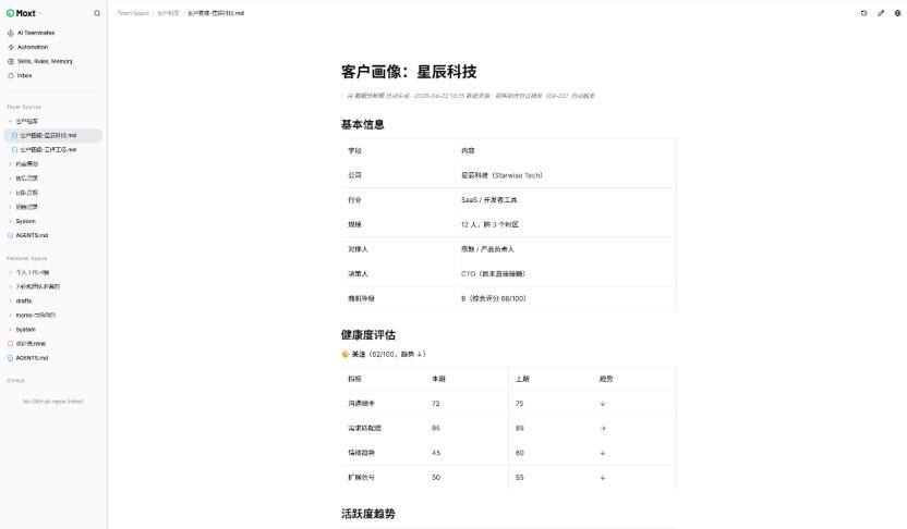 把人变成Skill,本质上是把经验的上下文做标准化封装。这件事不新鲜,企业知识库多年前就在做。区别是Moxt把这个封装放进了一个Agent能直接调用的环境里,而不是放进一个人类需要手动检索的文档库。
